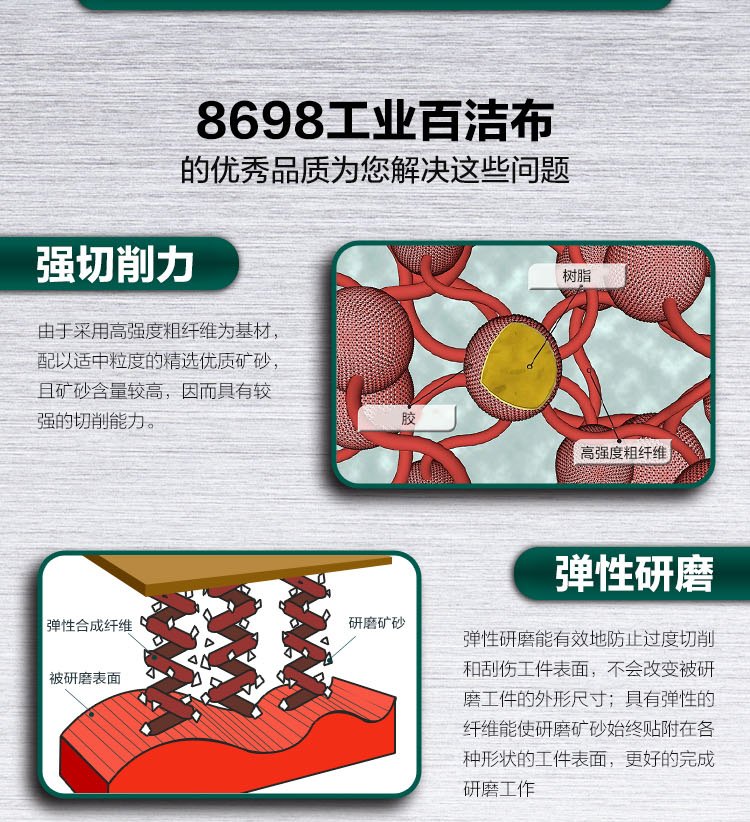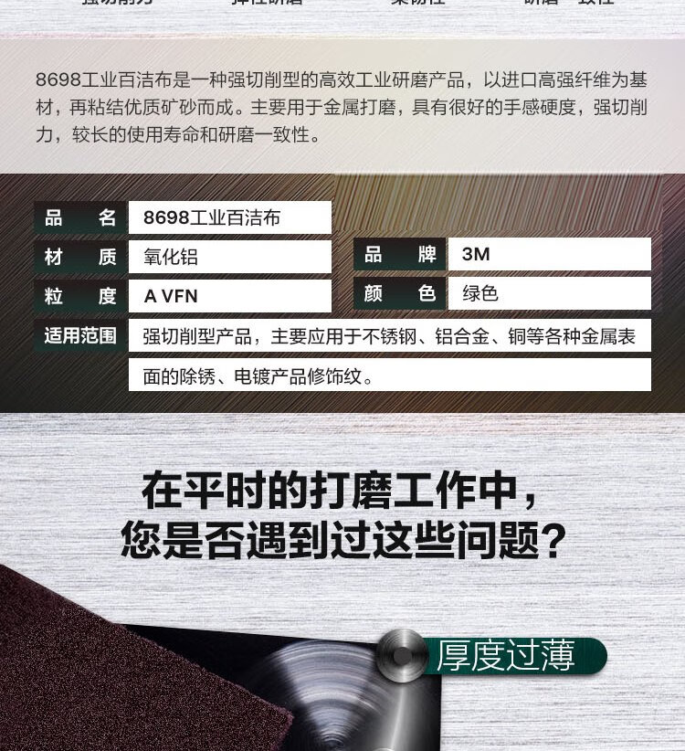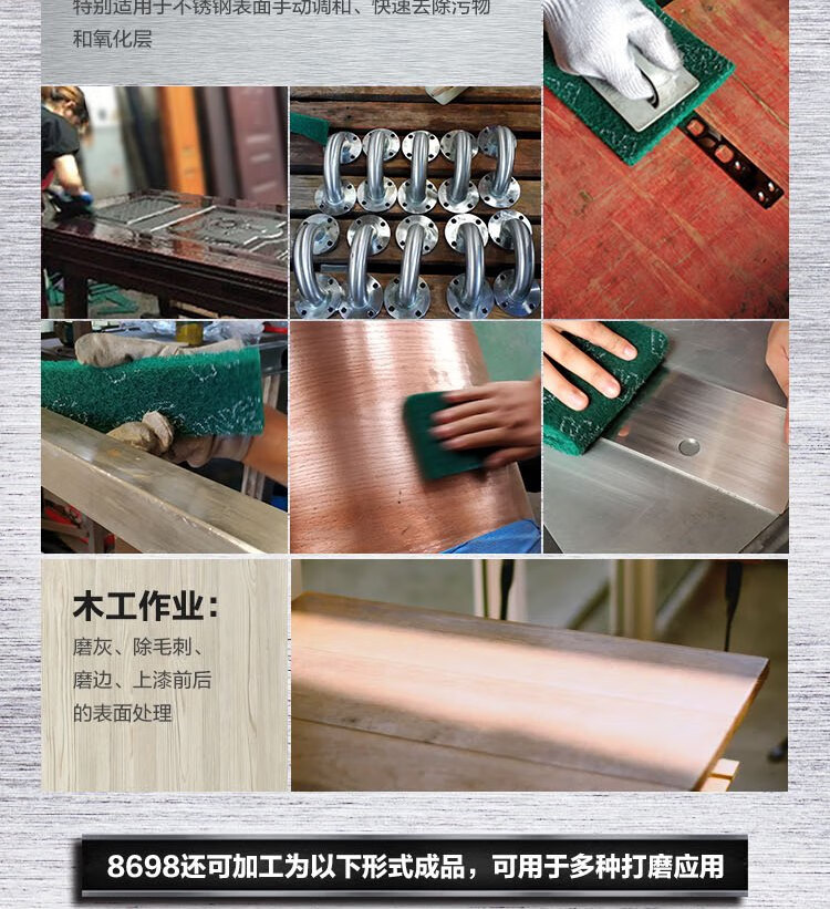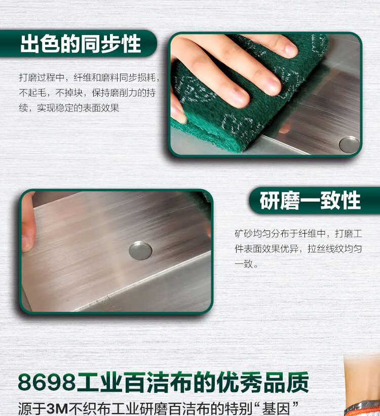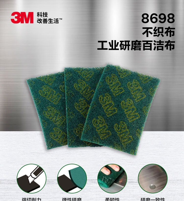 3M 8698 scouring pad, industrial abrasive cleaning cloth, sand-containing polishing water-resistant and oil-resistant stainless steel polishing brushed cloth 145*225/6*9 10 pieces