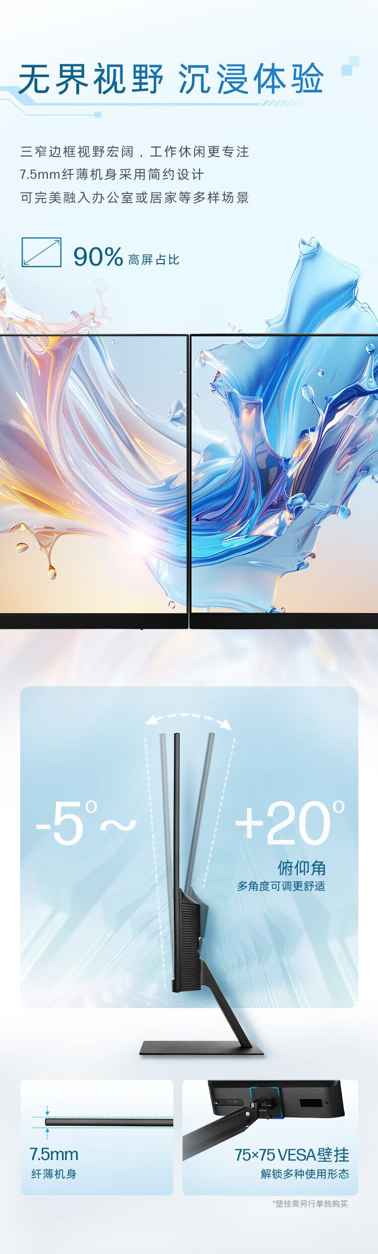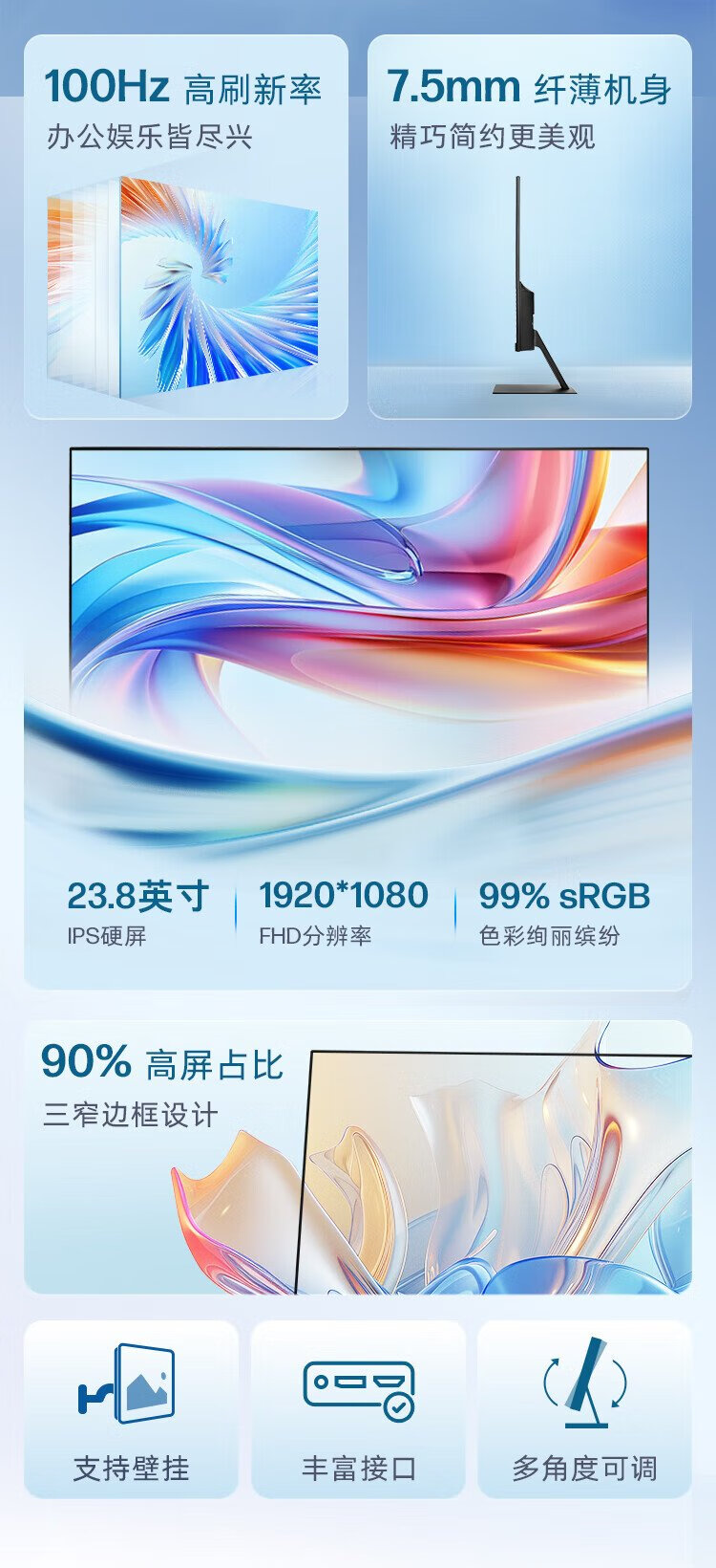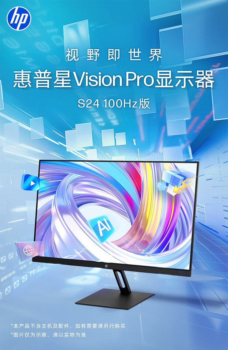 HP Star Vision Pro 23.8-inch monitor 100Hz IPS technology monitor three micro-edge design low blue light computer office display S24