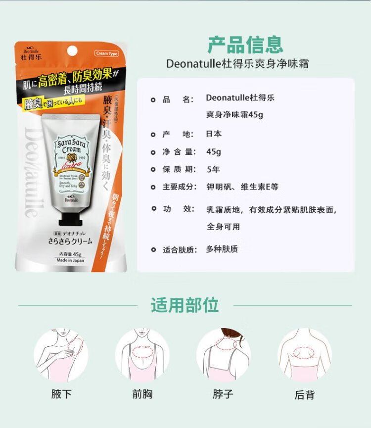 Deonatulle Japanese imported antiperspirant ointment powerfully removes body odor and odor for men and women antiperspirant ointment refreshing body cleansing cream 45g
