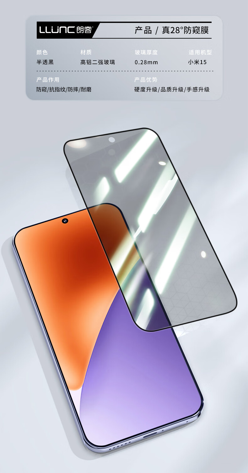 Langke Ultrasonic Unlocking Suitable for Xiaomi 15 anti-peep tempered film xiaomi15 mobile phone film fully covers ultra-thin glass anti-peeping, anti-fingerprint and anti-fall mobile phone film 2 pieces
