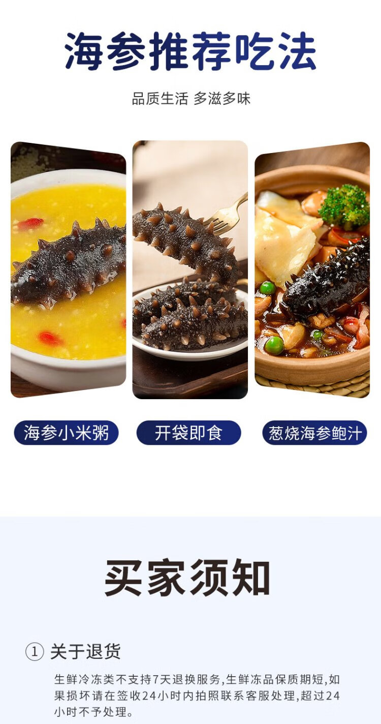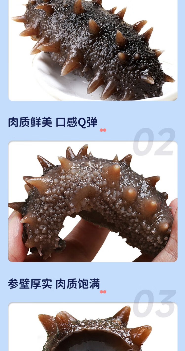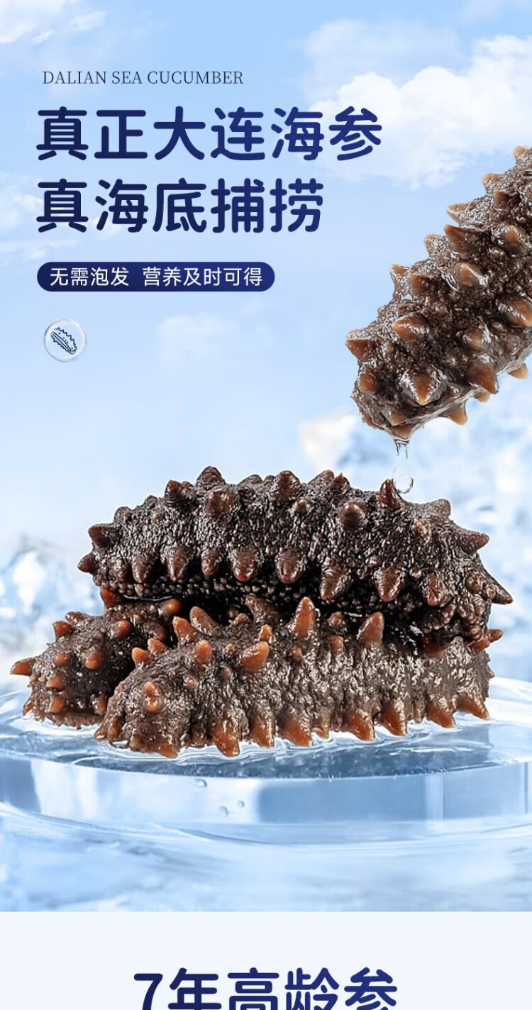 Fresh out of Dalian ready-to-eat sea cucumbers, sea cucumbers, sea cucumbers, sea cucumbers, sea cucumbers, dried goods 7-13 heads, net weight 500g