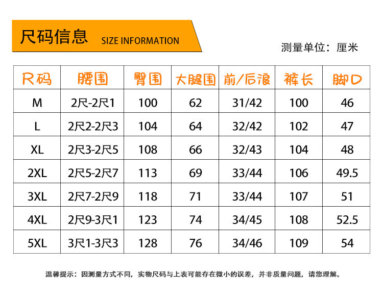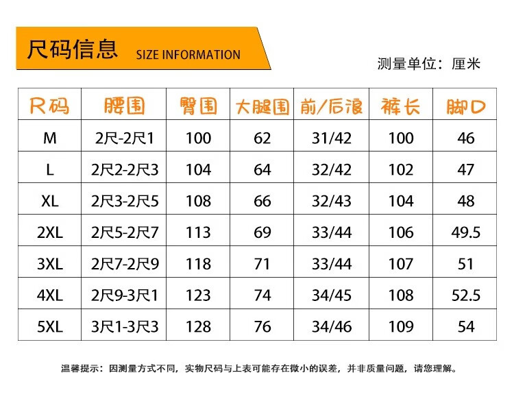 Outseam (cm) 99 cm 101.5 cm 104 cm 106.5 cm 109 cm