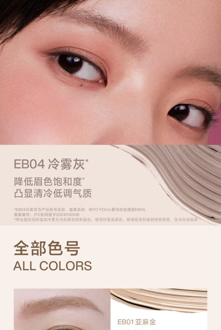 INTO YOU Dyeing Eyebrow Cream Waterproof and Sweatproof Natural Styling Non-smearing Eyebrow Pencil Moisturizing and Colorful Birthday Gift for Women EB02