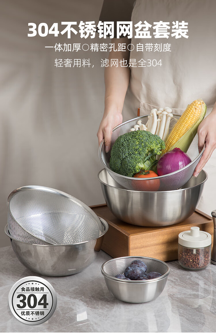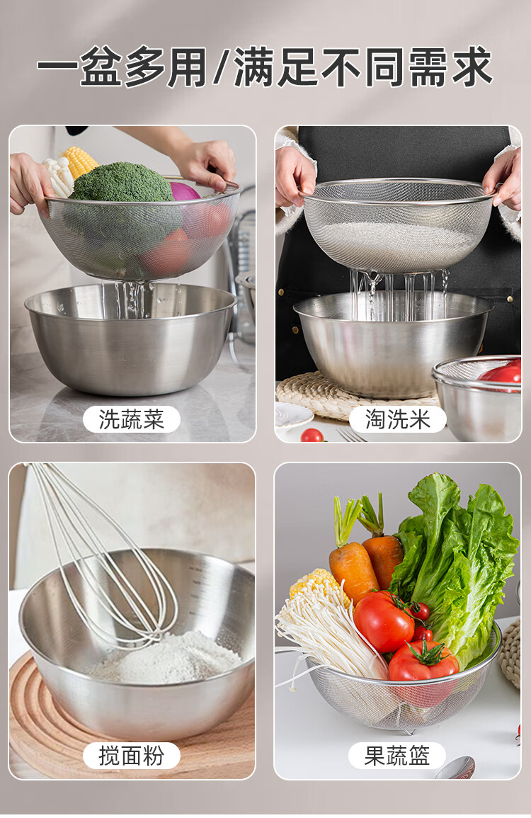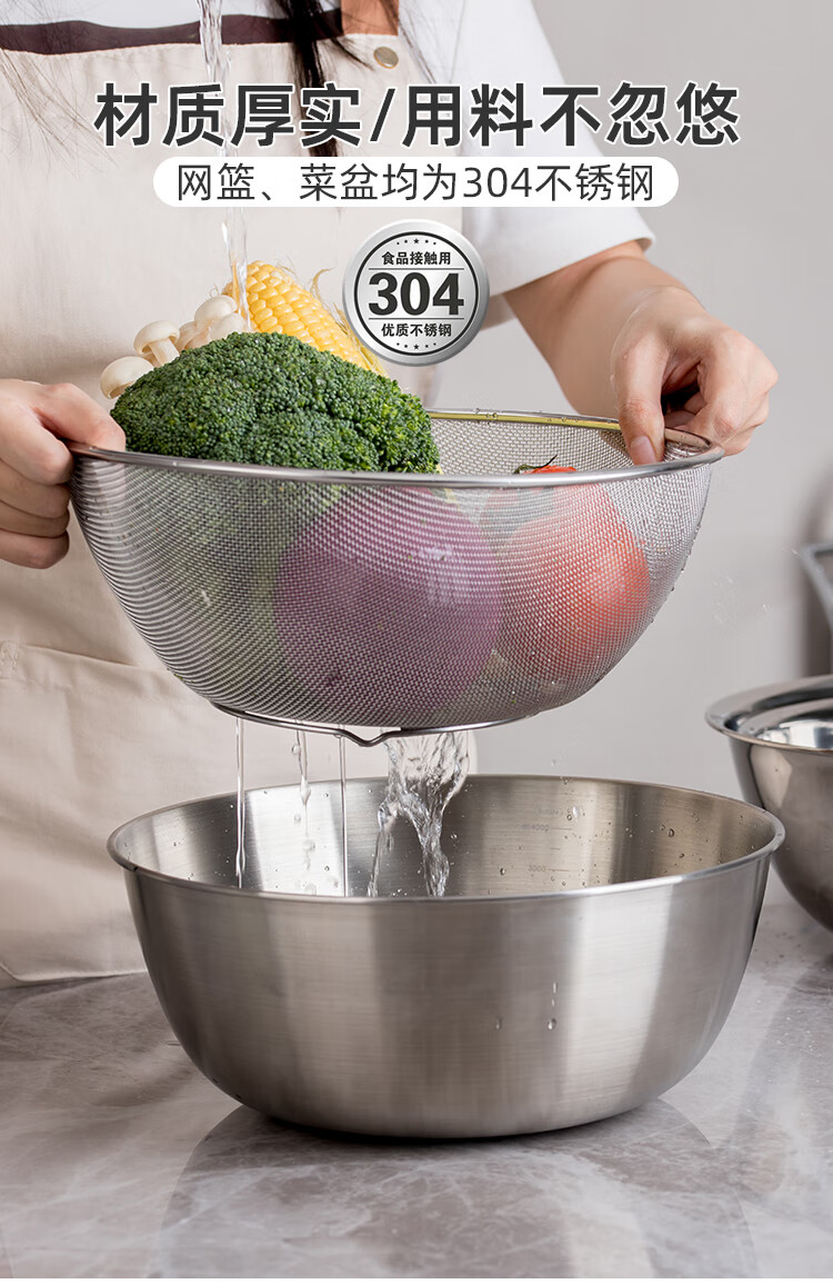 Half Life Stainless Steel Wash Basin Drain Basket Rice Washing Sieve Rice Cleaning Artifact Kitchen Fruit Basket Household Drainage Basin Set