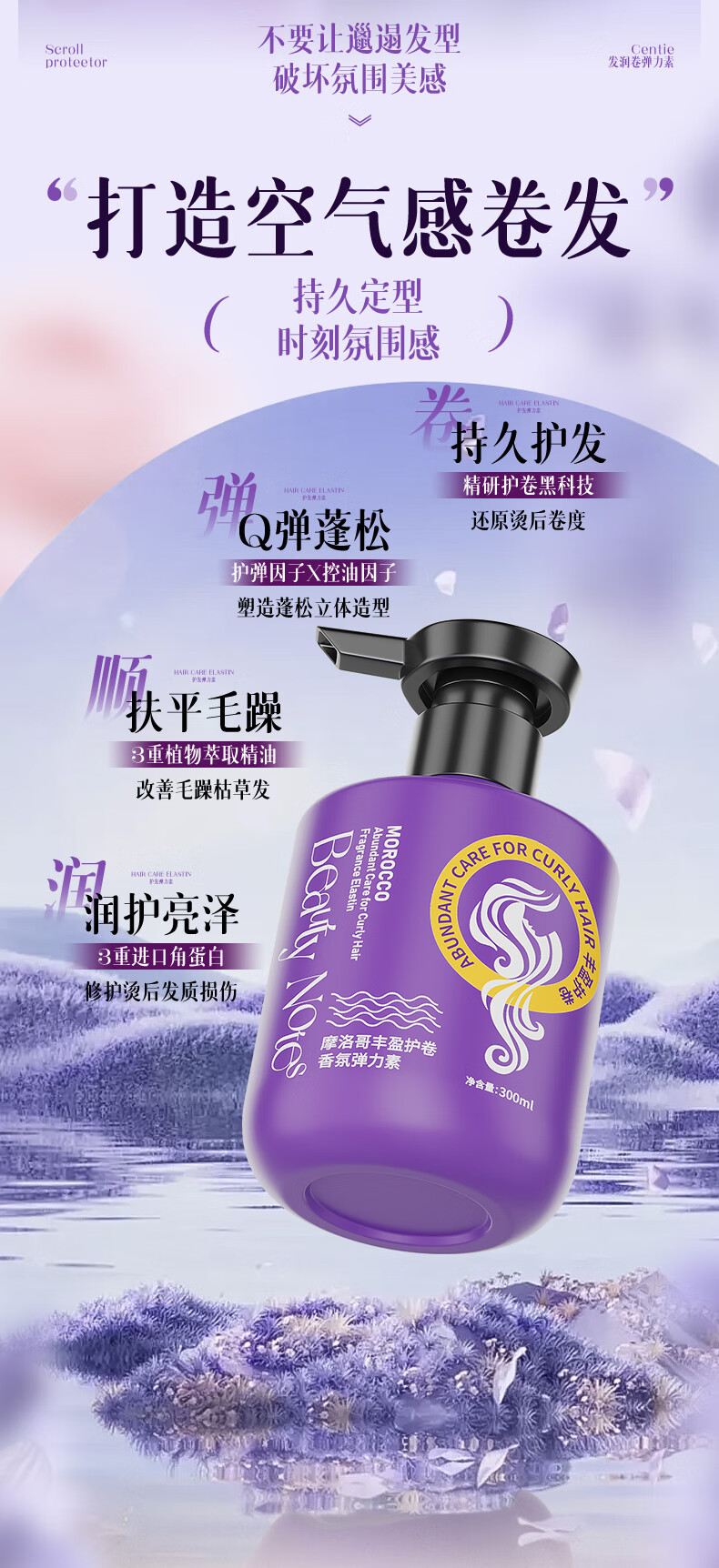 BEAUTY NOTES Curly Hair Perm Care Elastin Women's Curly Hair Moisturizing Protector Anti-frizz Fluffy Hair Styling 300ml
