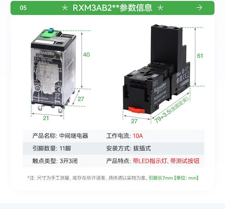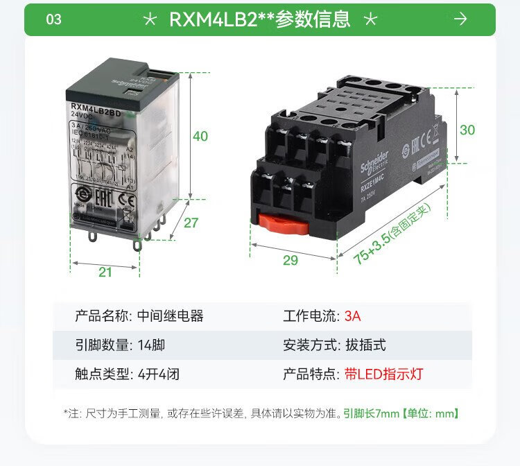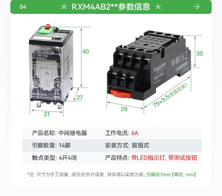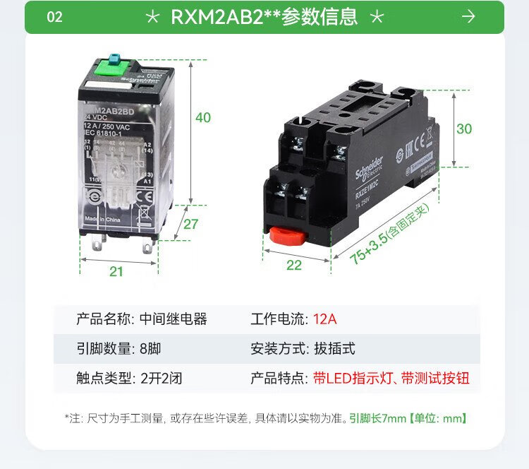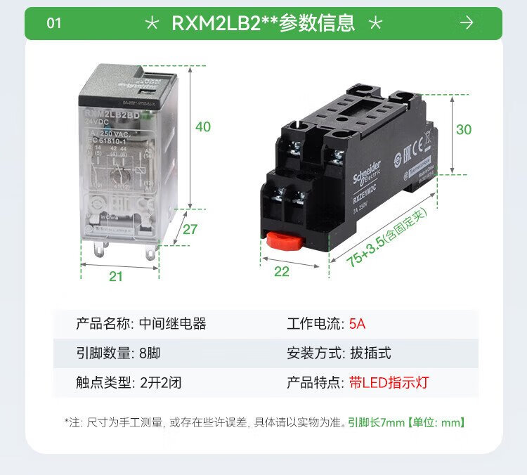 Schneider Electric relay set RXM2LB2BD+RXZE1M2C intermediate relay with base DC24V 2 open 2 closed 8 feet 5A with LED indicator brand authorization