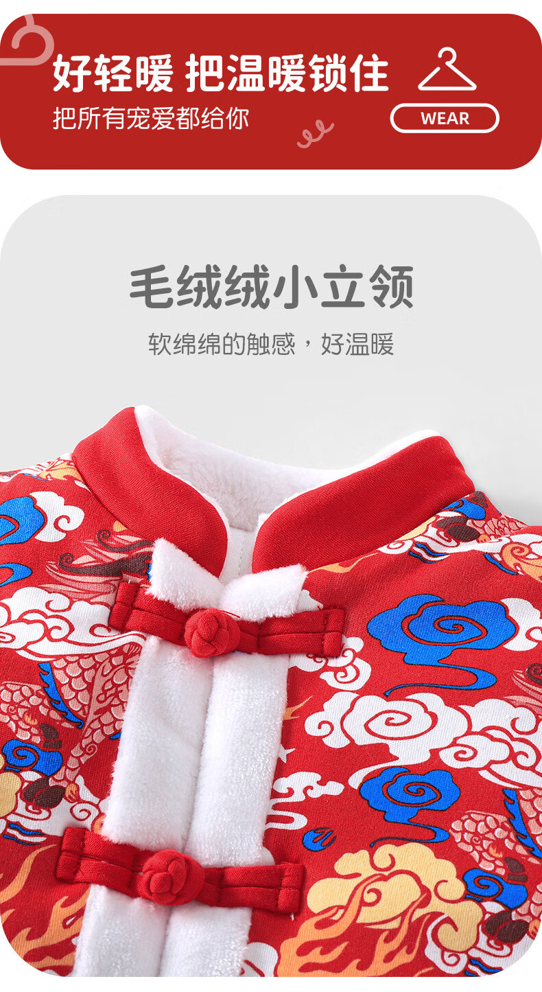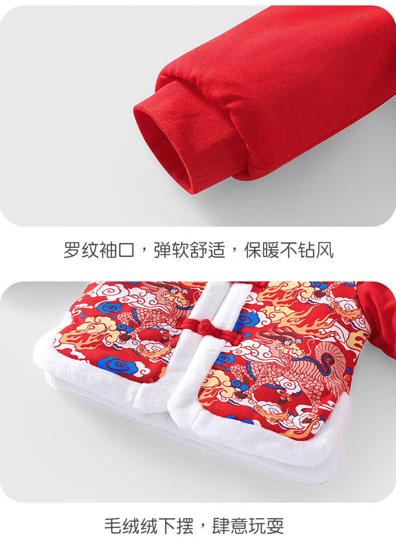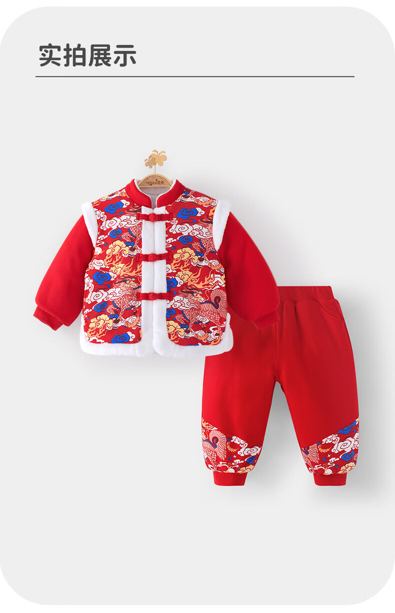 Youqi baby clothes autumn and winter velvet thickening suit full moon day one-year-old dress baby New Year's greetings New Year's clothing
