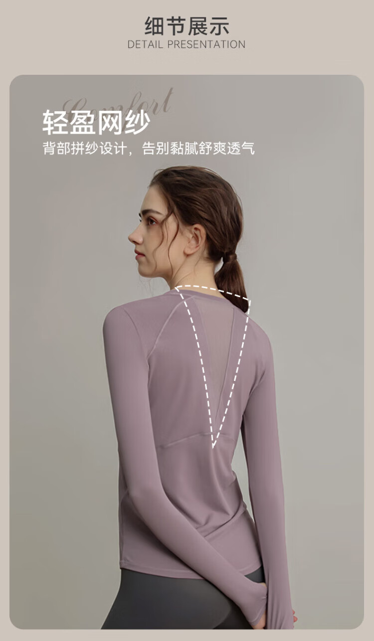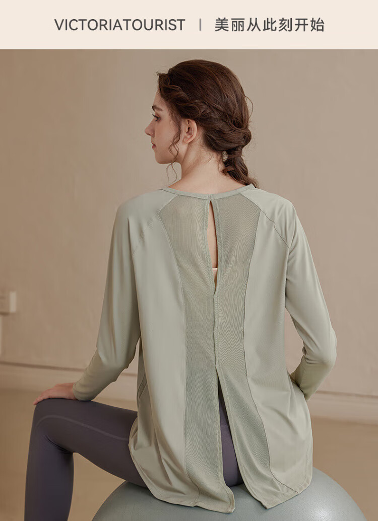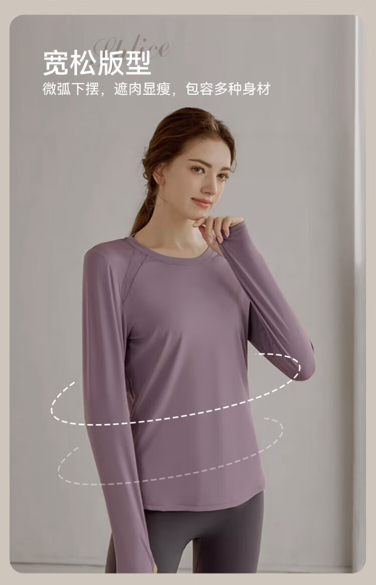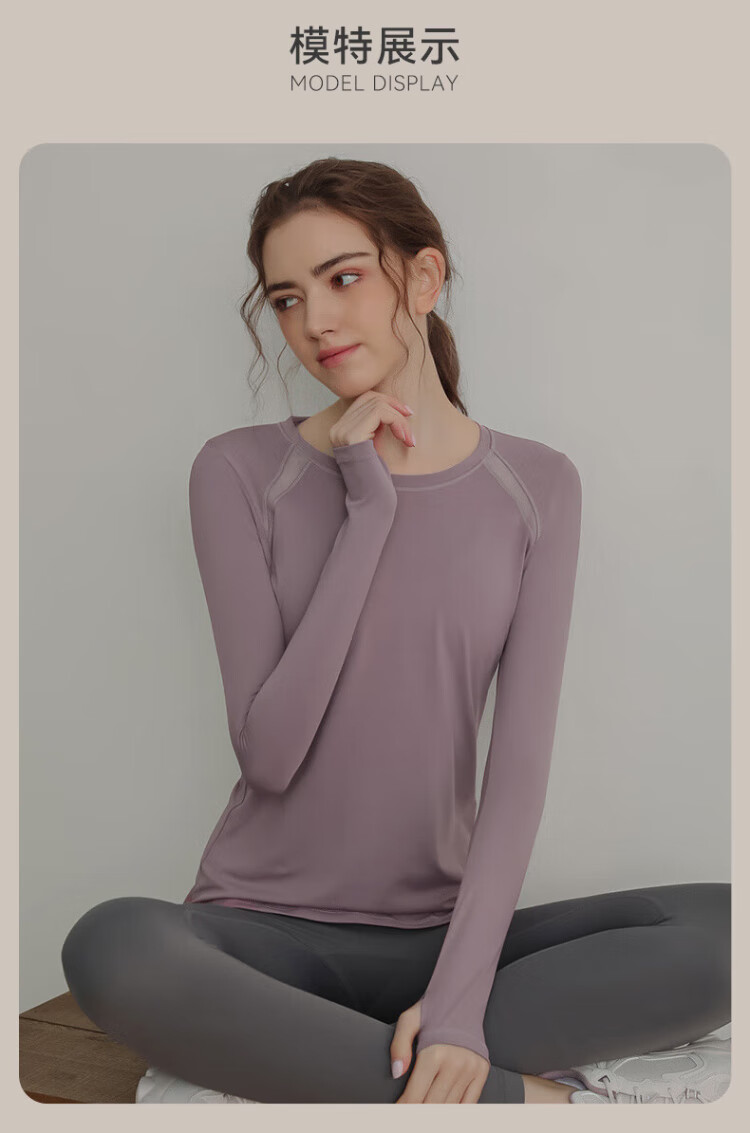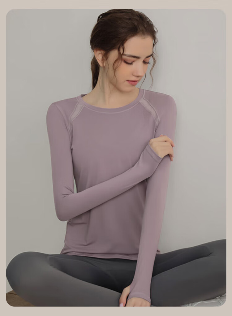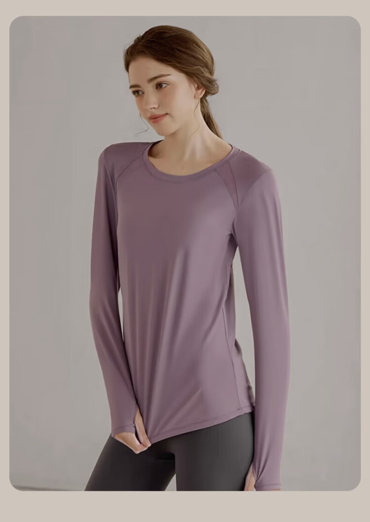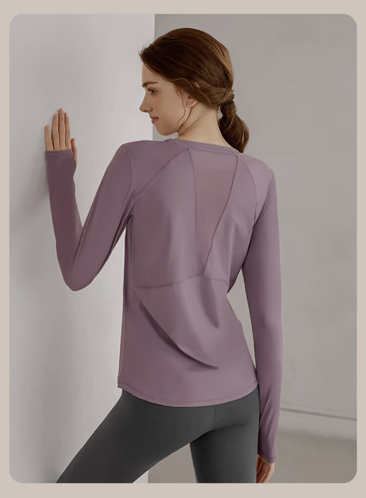 Victoria Traveler Yoga Wear Women's Loose Long-Sleeved Sports Top Breathable Running Fitness Wear Pilates Training Wear Mesh Purple M