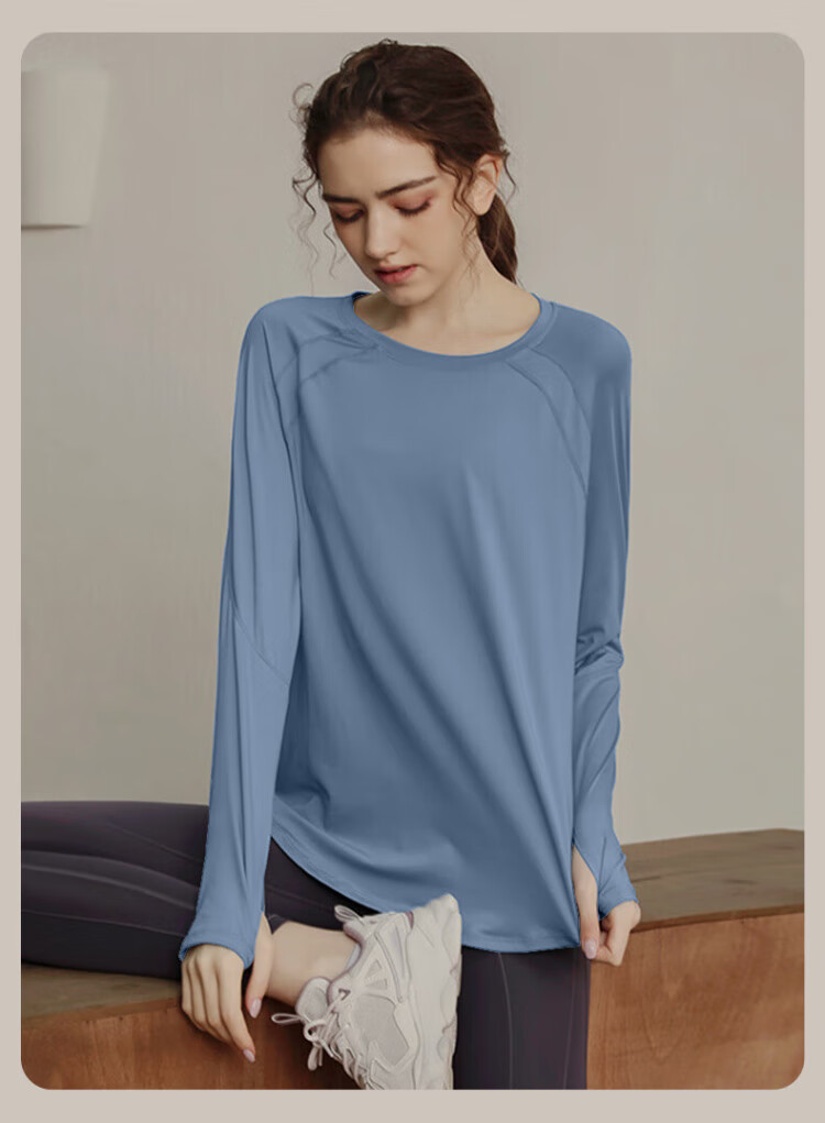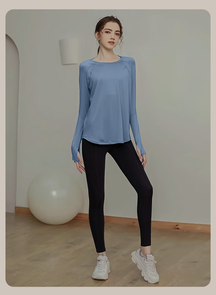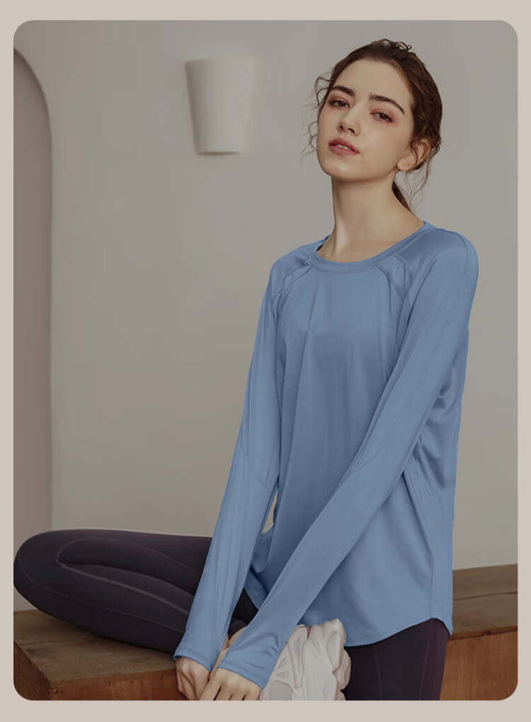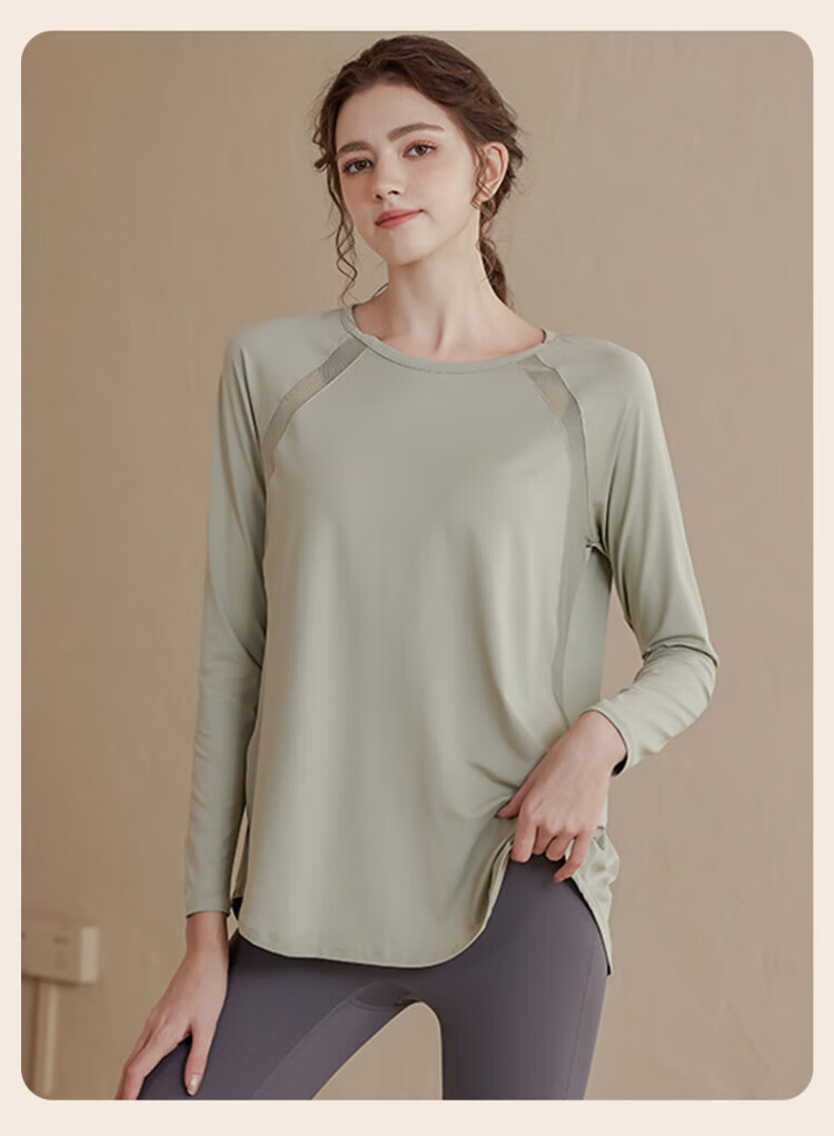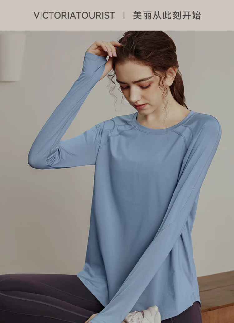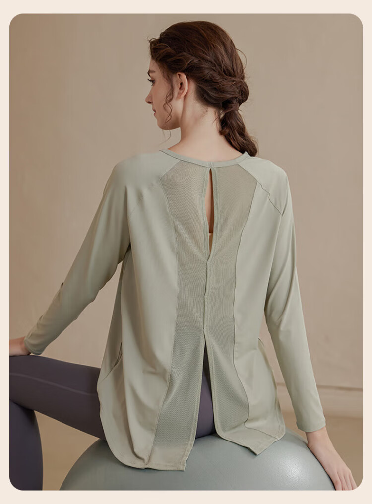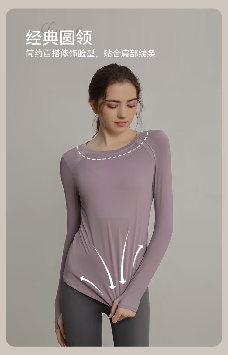 Victoria Traveler Yoga Wear Women's Loose Long-Sleeved Sports Top Breathable Running Fitness Wear Pilates Training Wear Mesh Purple M