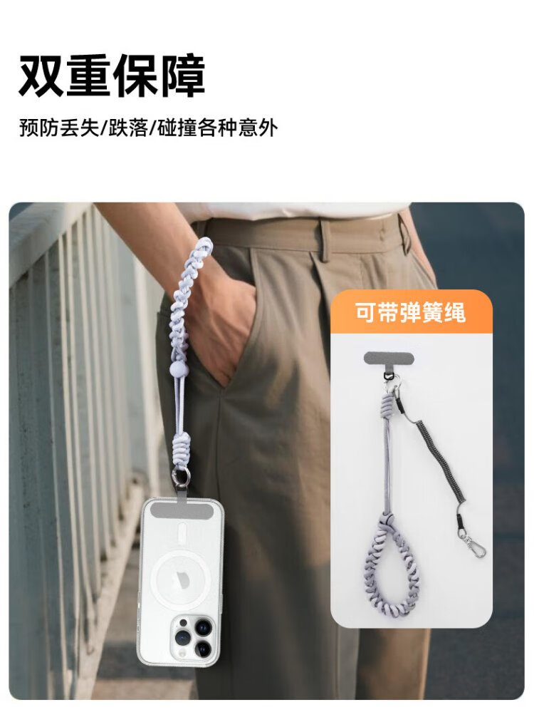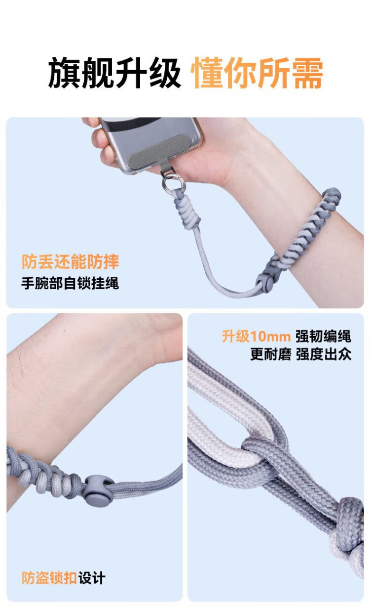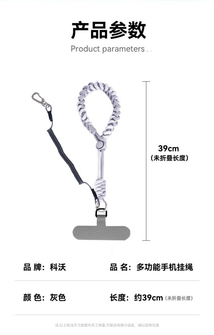 Kewo mobile phone lanyard European anti-theft rope short wrist spiral braided anti-lost portable adjustable fashionable outdoor sports mobile phone universal wristband comes with gasket + spring coil