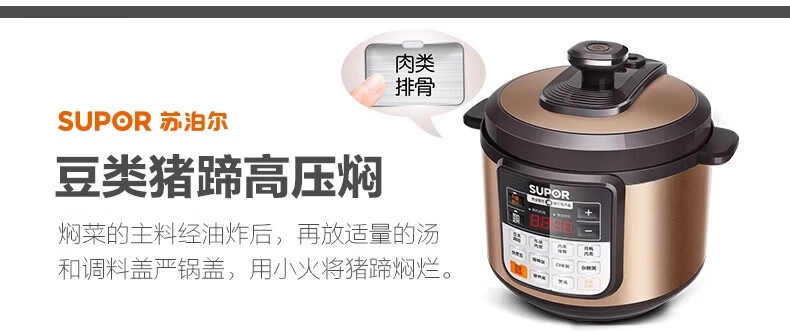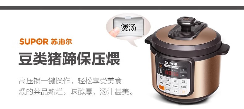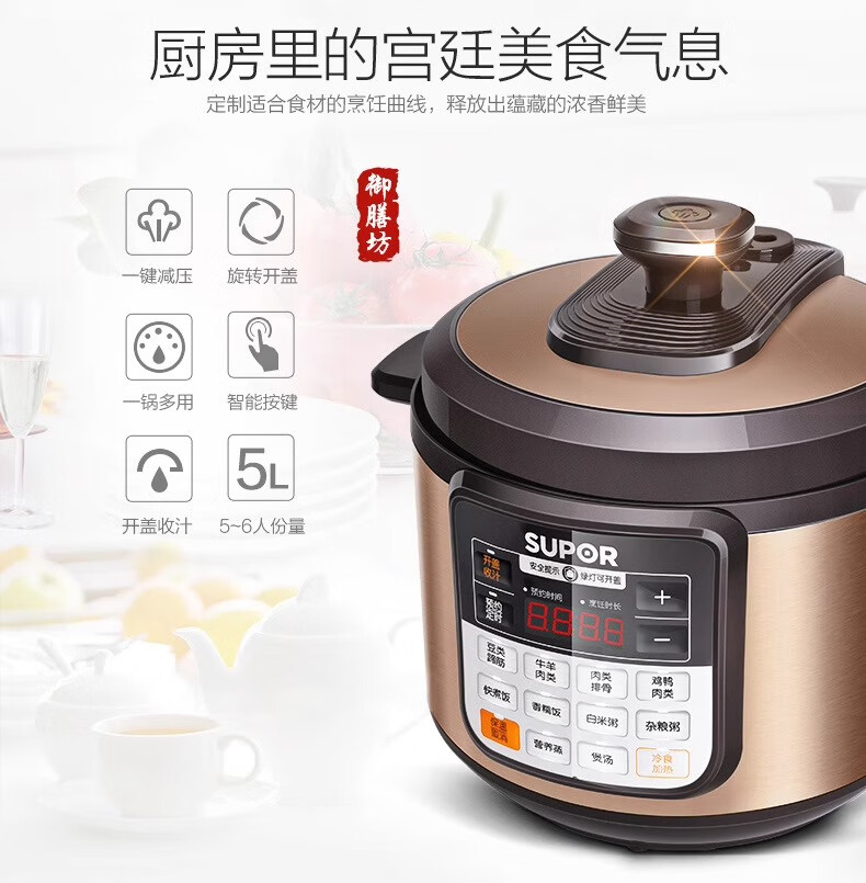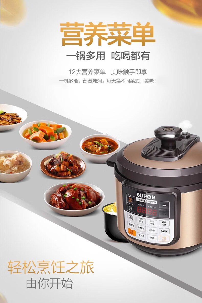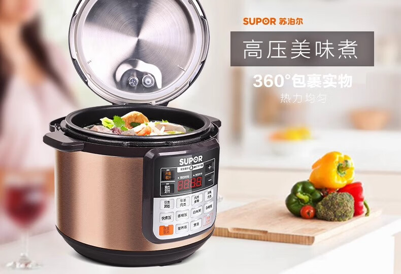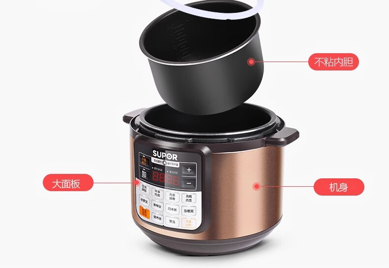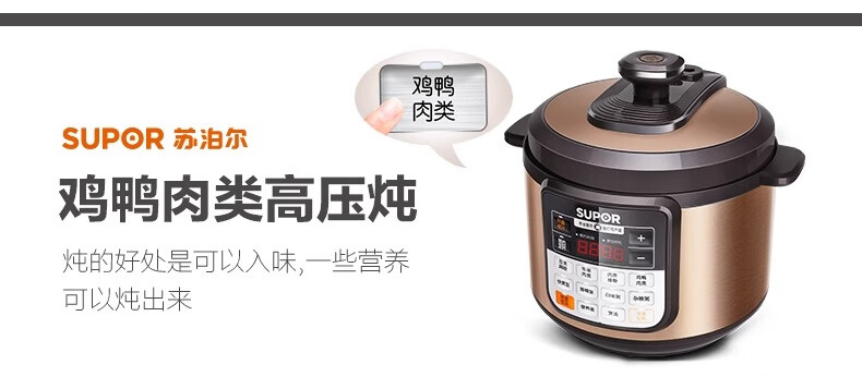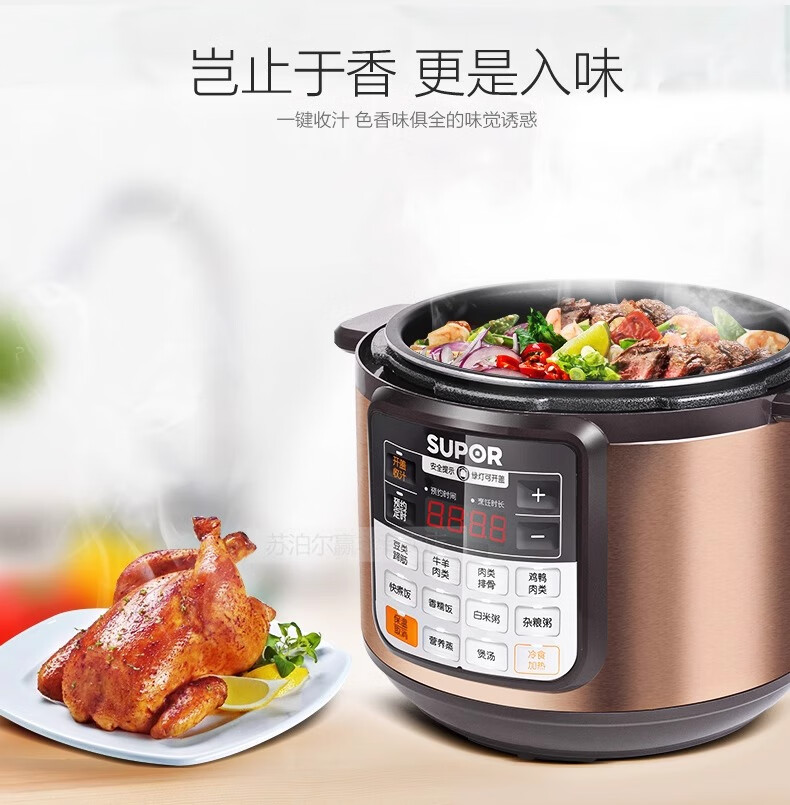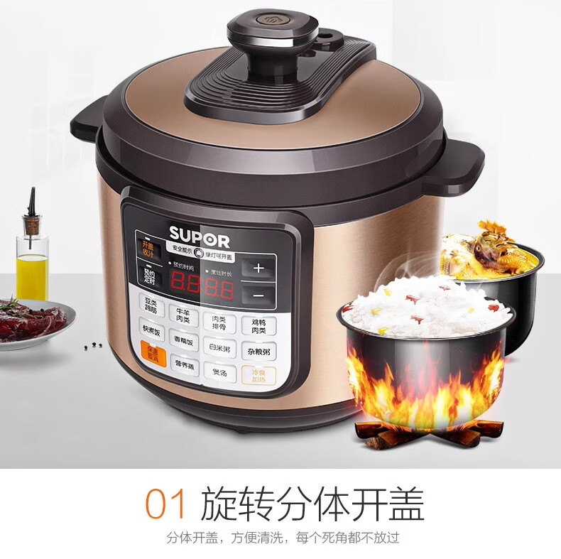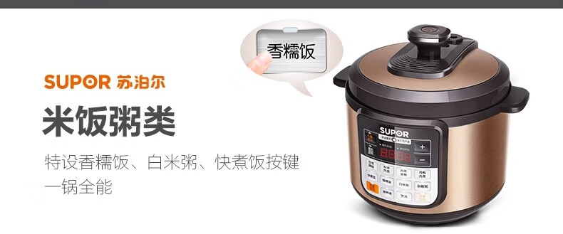 Supor electric pressure cooker double-gallon 5L smart household electric pressure cooker smart reservation multi-function rice cooker 4-6-8 people CYSB50YCW10D-100