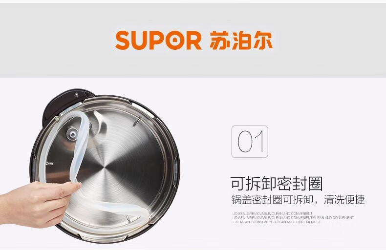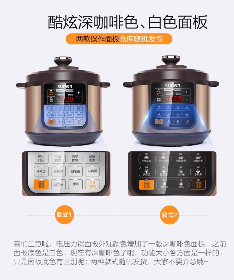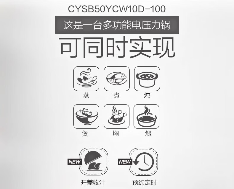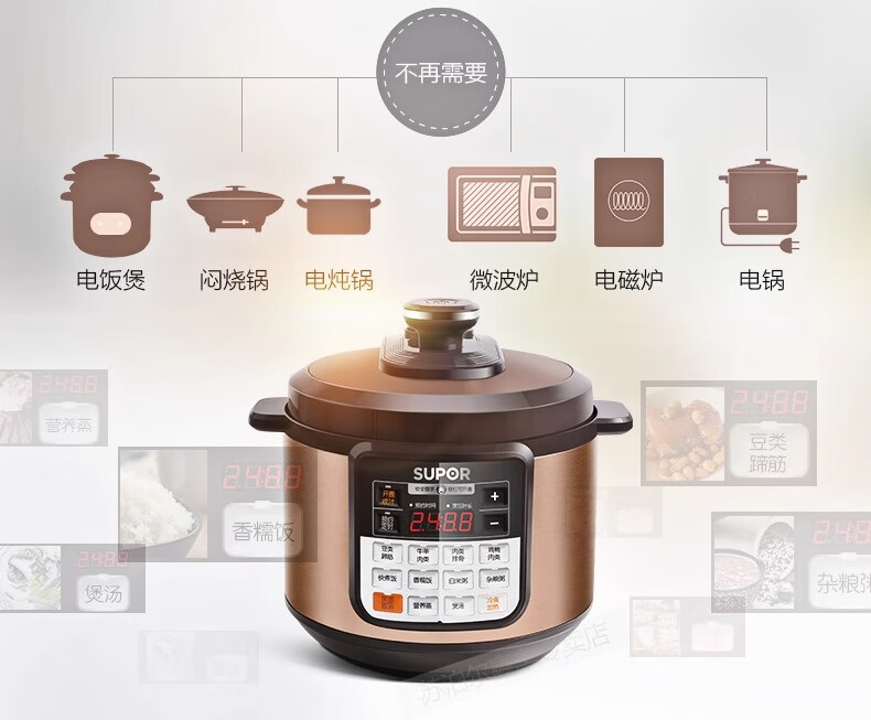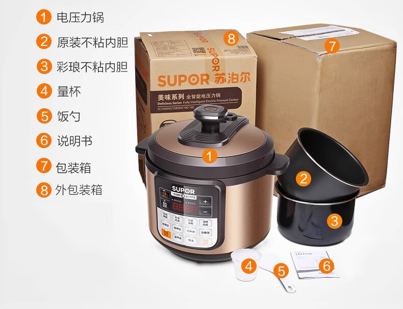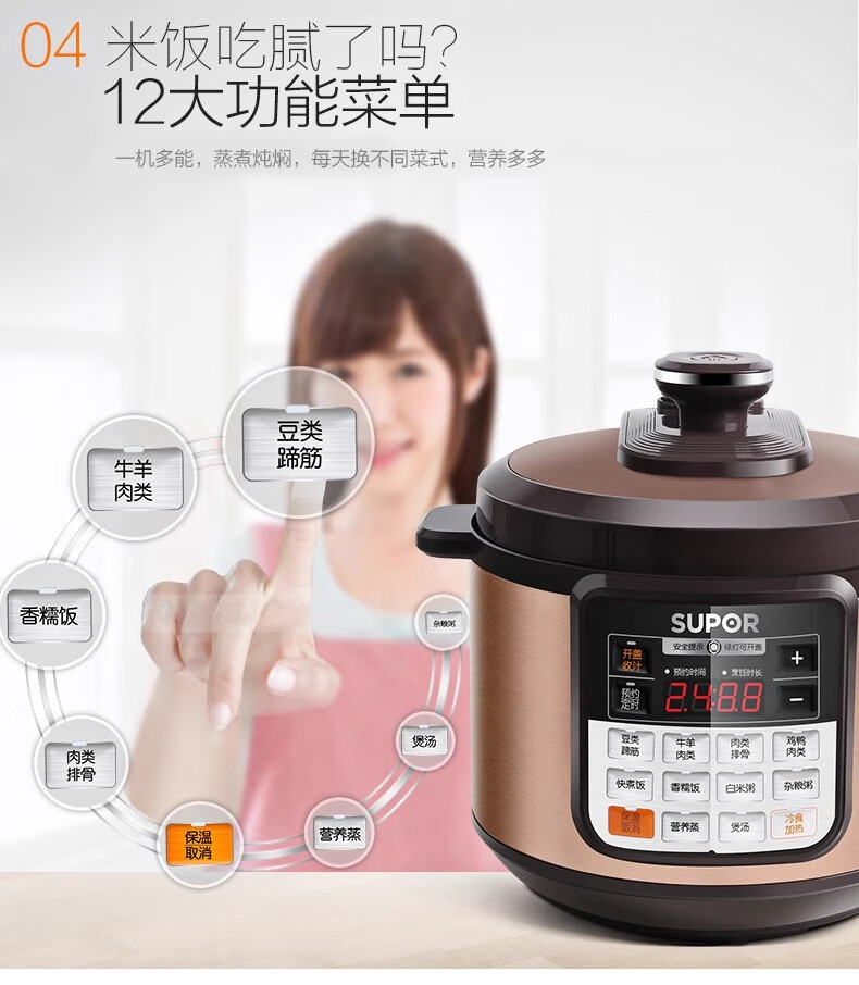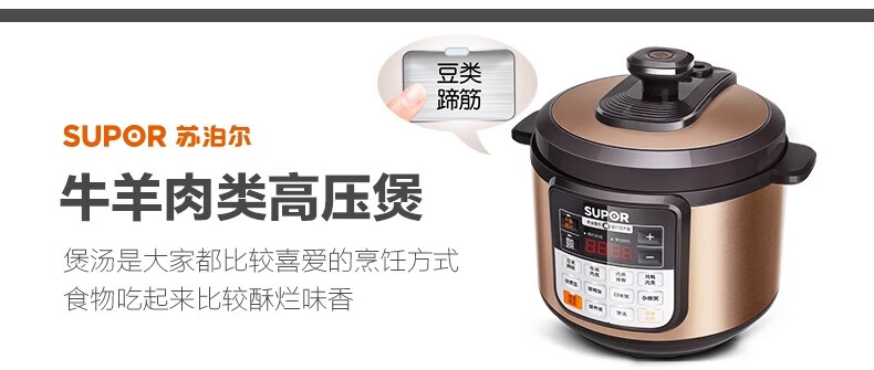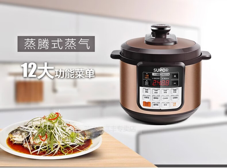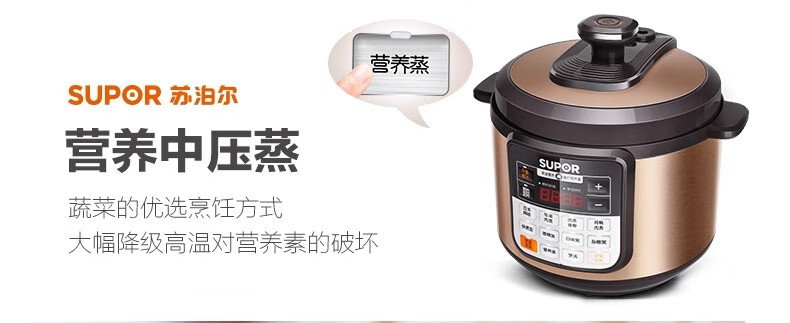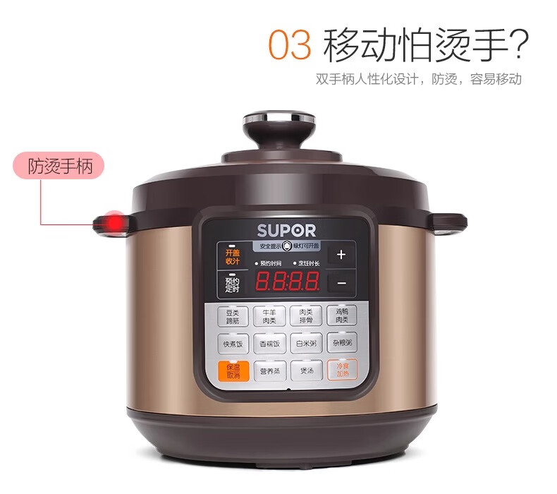 Supor electric pressure cooker double-gallon 5L smart household electric pressure cooker smart reservation multi-function rice cooker 4-6-8 people CYSB50YCW10D-100