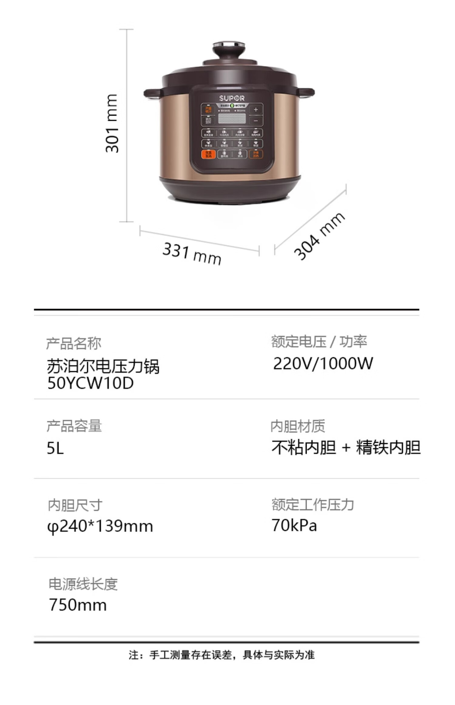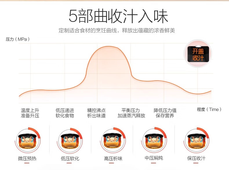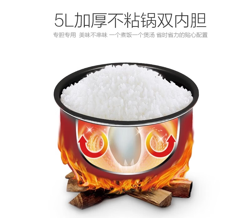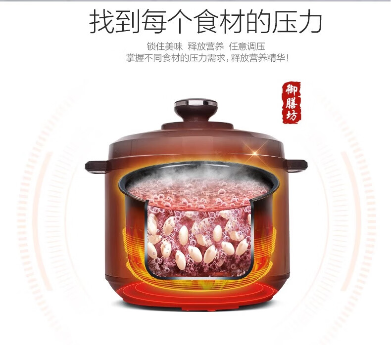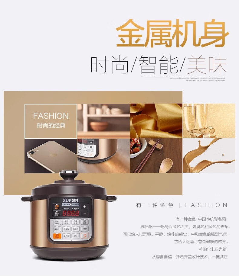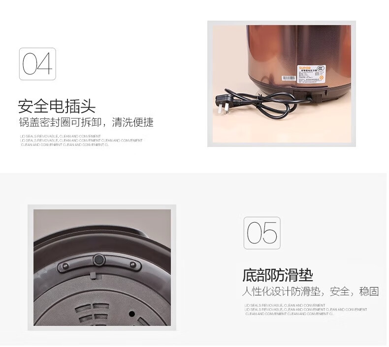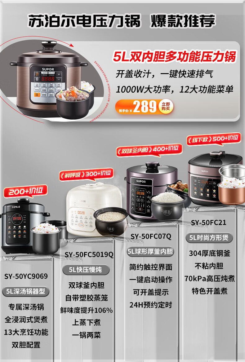 Supor electric pressure cooker double-gallon 5L smart household electric pressure cooker smart reservation multi-function rice cooker 4-6-8 people CYSB50YCW10D-100