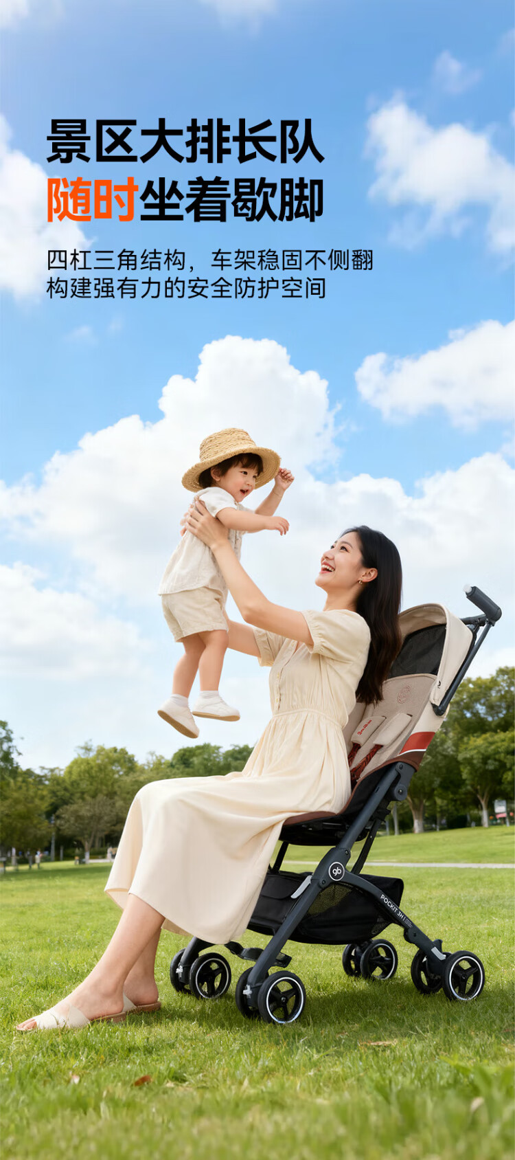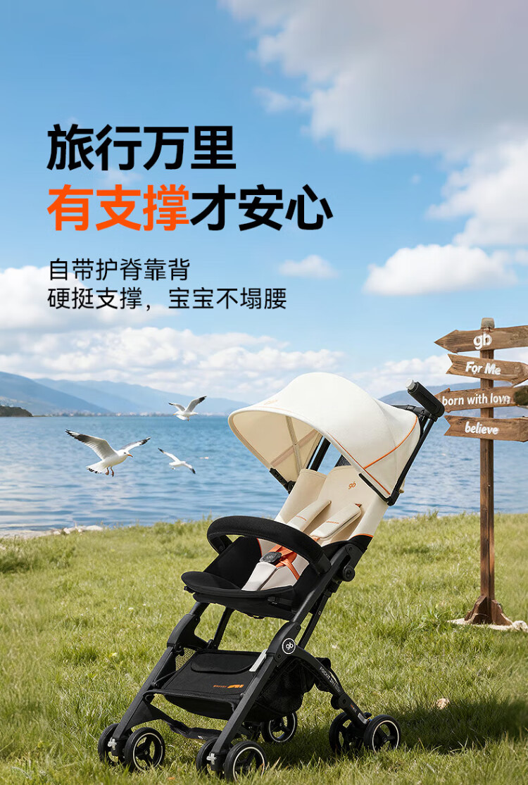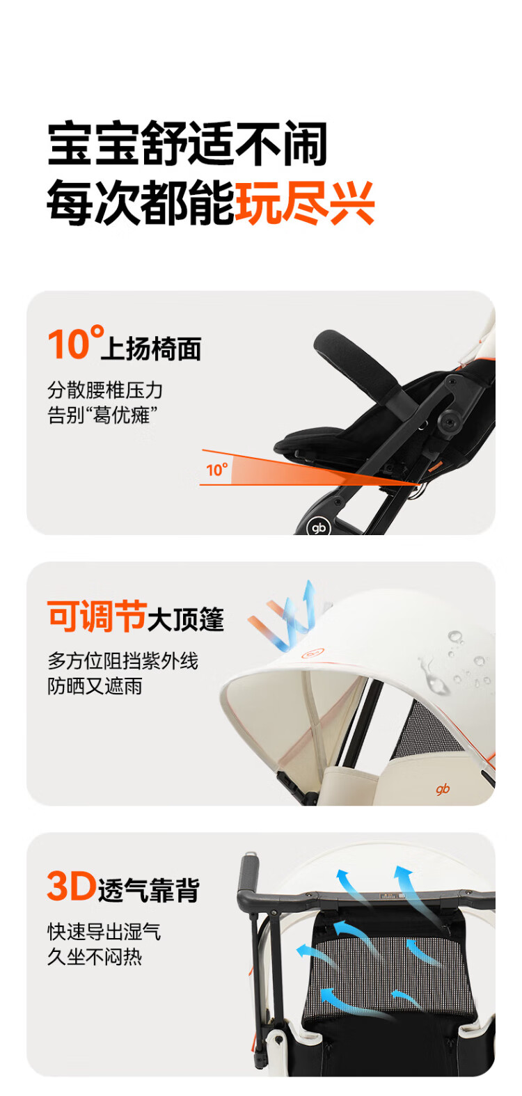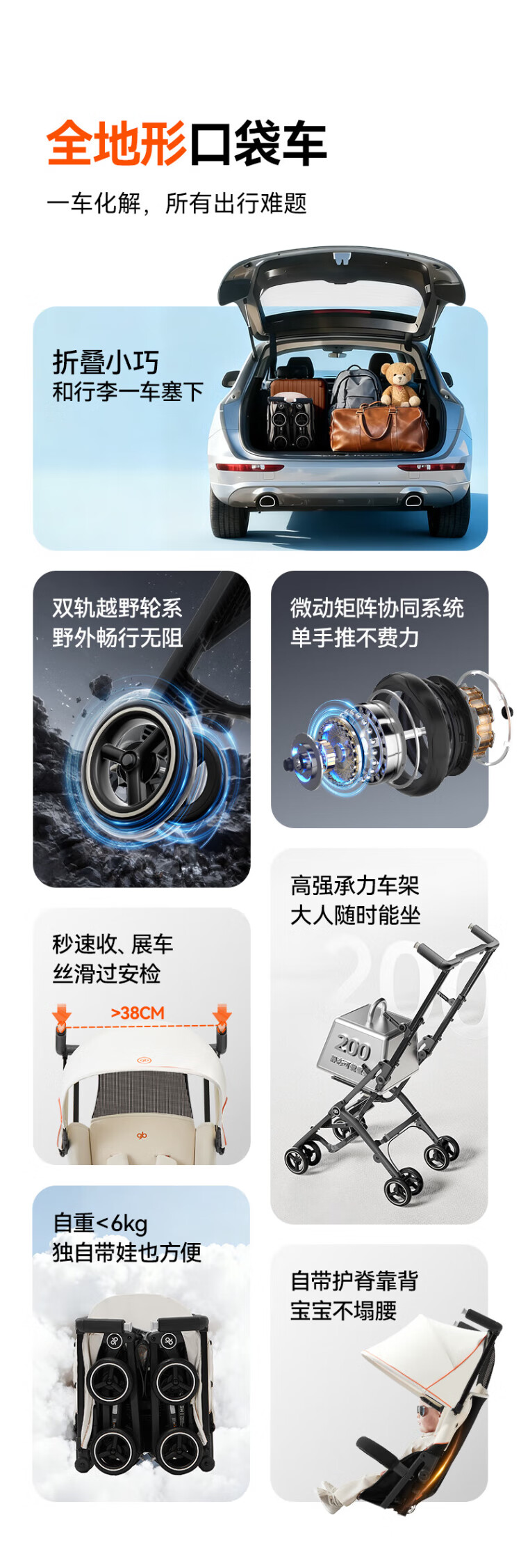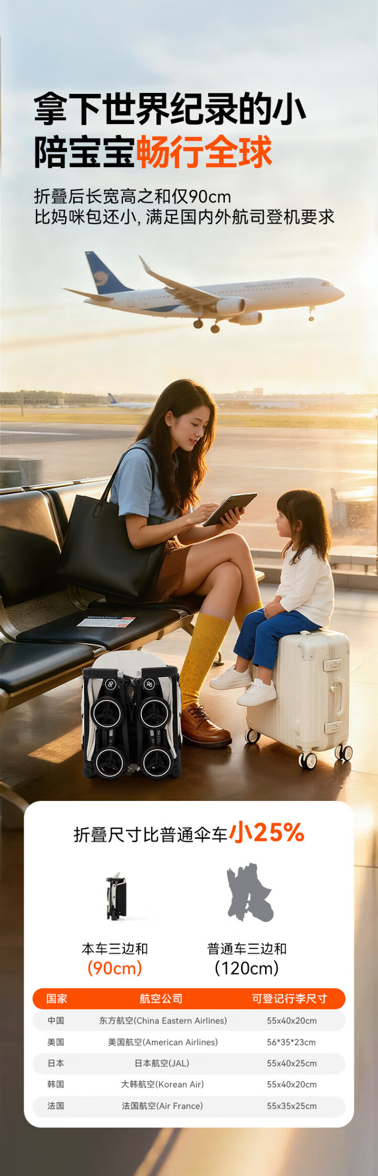 Goodbaby (gb) pocket stroller, national subsidy, lightweight stroller that can be boarded and walked on the plane, lightweight folding station wagon, black and orange