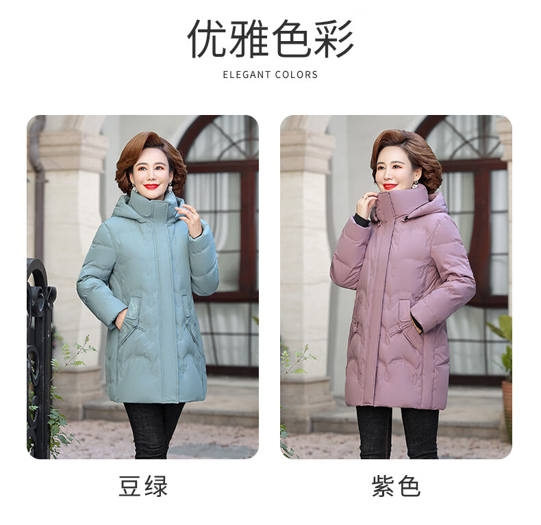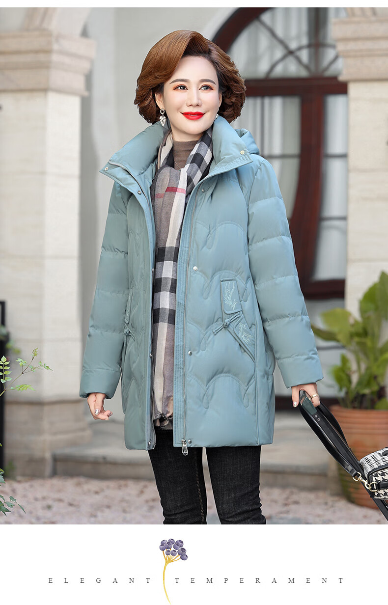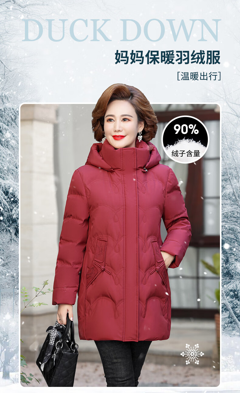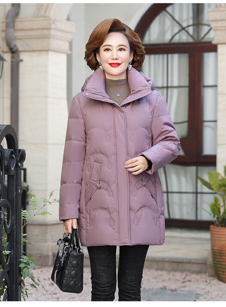 Yalu middle-aged mother down jacket 2025 winter new style grandma solid color mid-length old lady warm and cold-proof duck down jacket