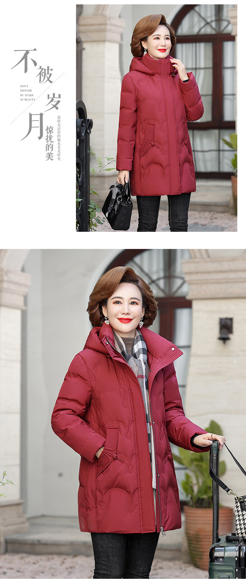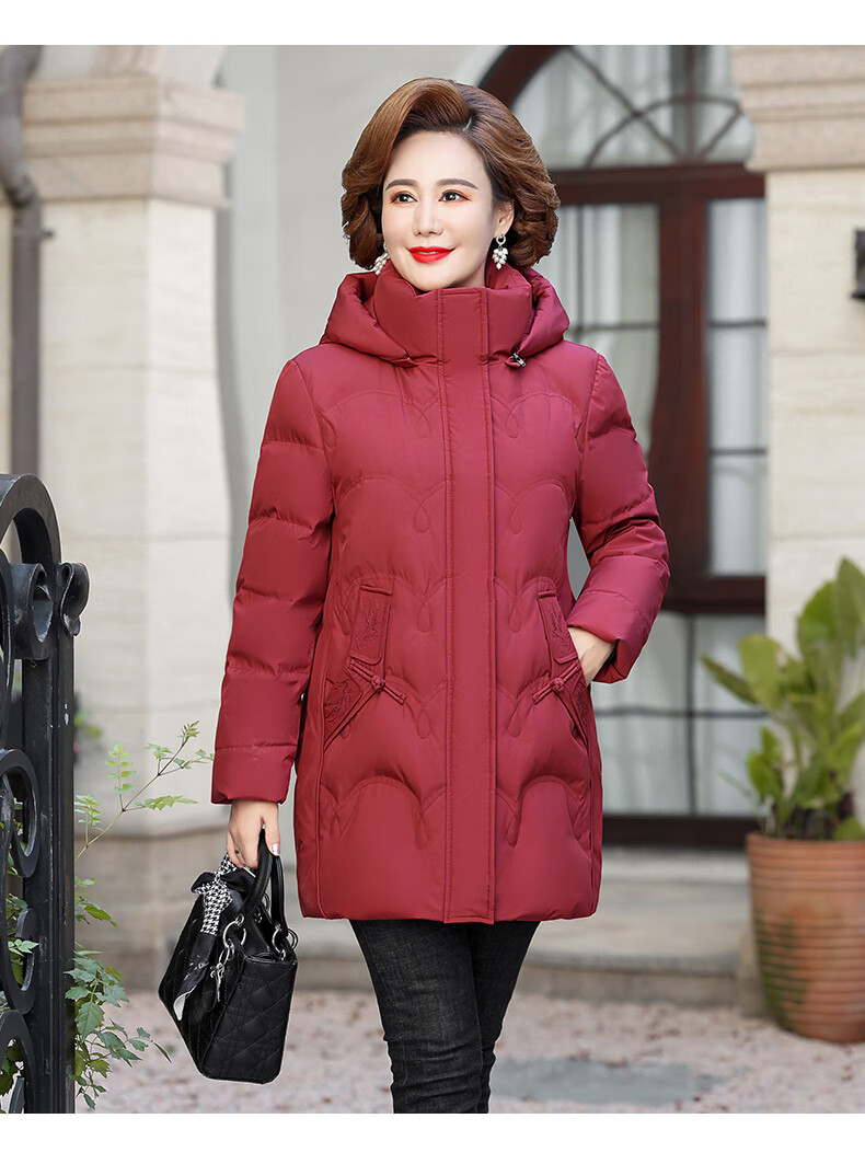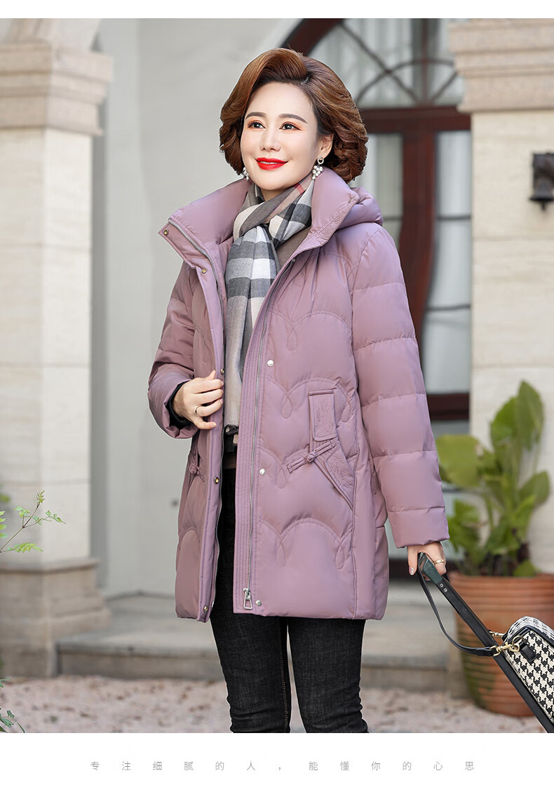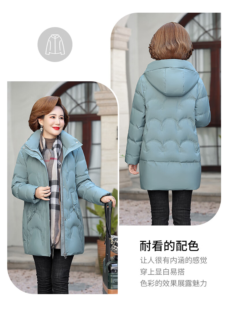 Yalu middle-aged mother down jacket 2025 winter new style grandma solid color mid-length old lady warm and cold-proof duck down jacket