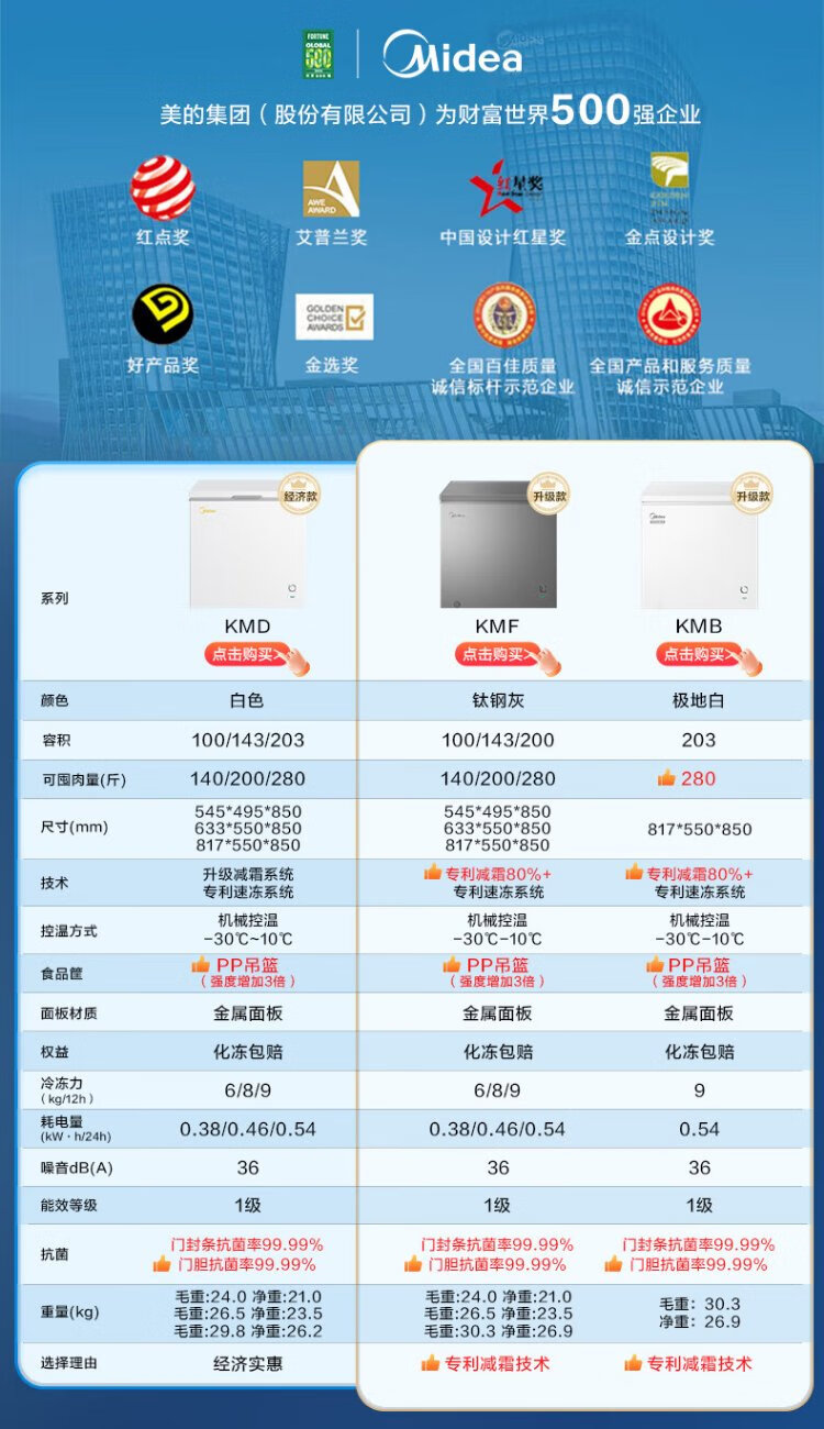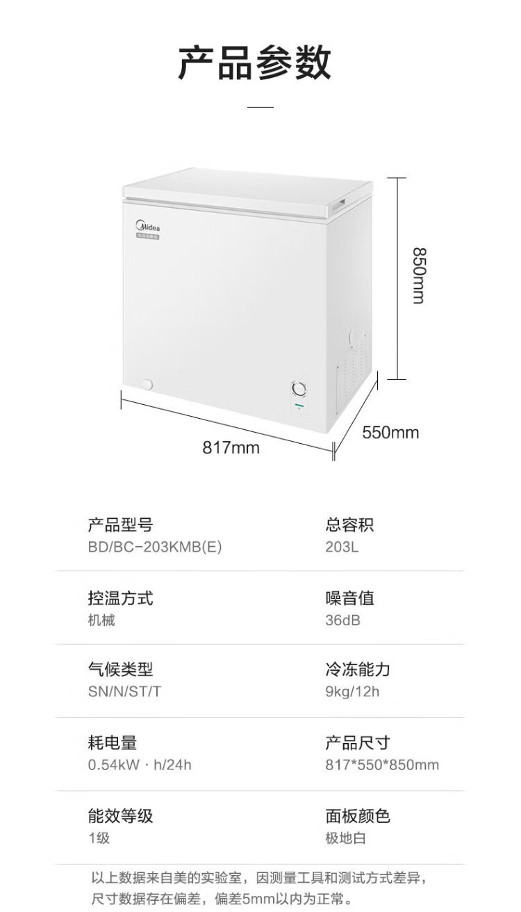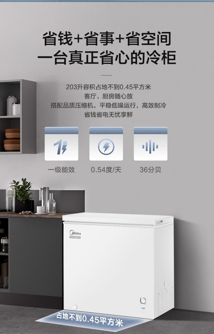 Midea upgraded anti-frost 200 liters or above household small freezer refrigerated freezer fresh-keeping freezer first-class energy-saving breast milk small refrigerator BD/BC-203KMB (E) national subsidy