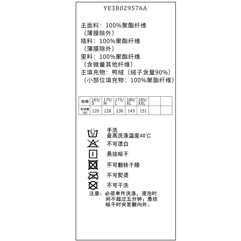 China (cm) 165 / 88-90 170 / 96-98 175 / 108-110 180 / 118-122 185 / 126-130