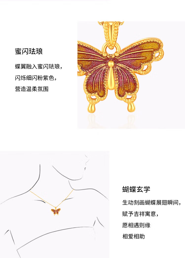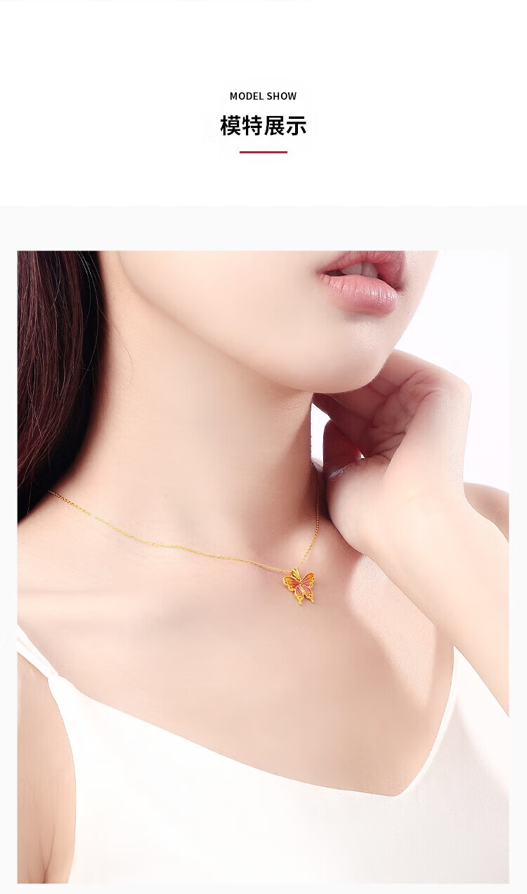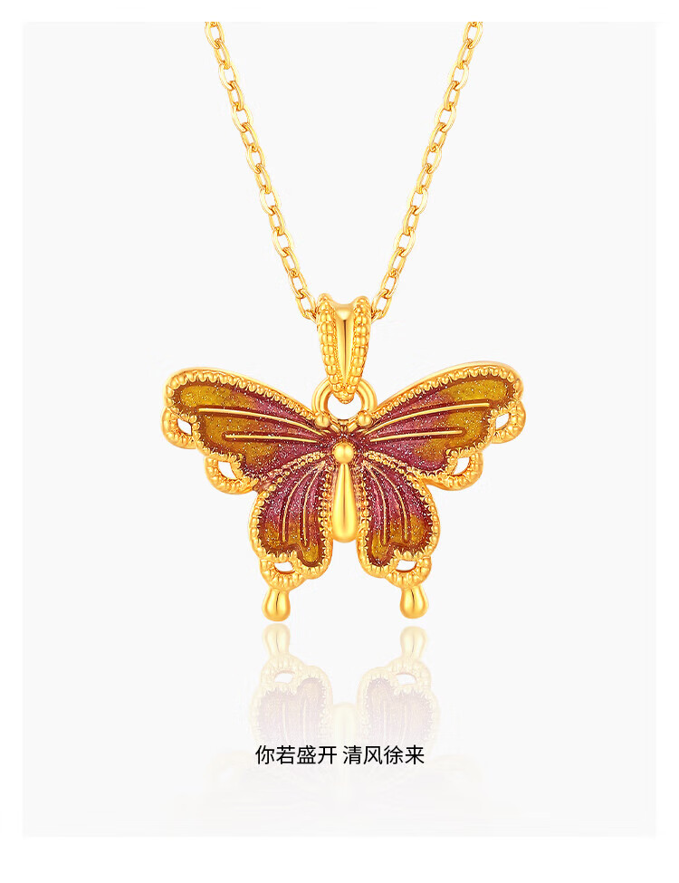 Safir birthday gift 18K gold pendant female gold butterfly gift girlfriend birthday gift single pendant 18K gold blue butterfly