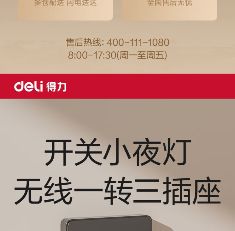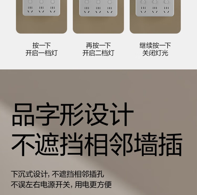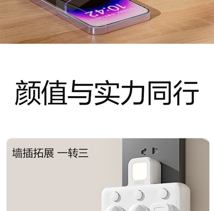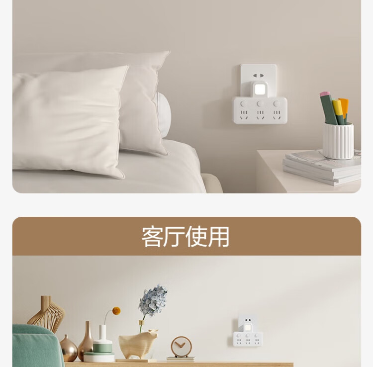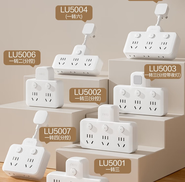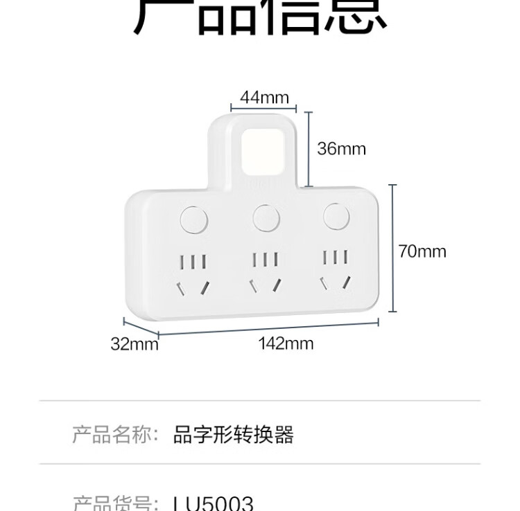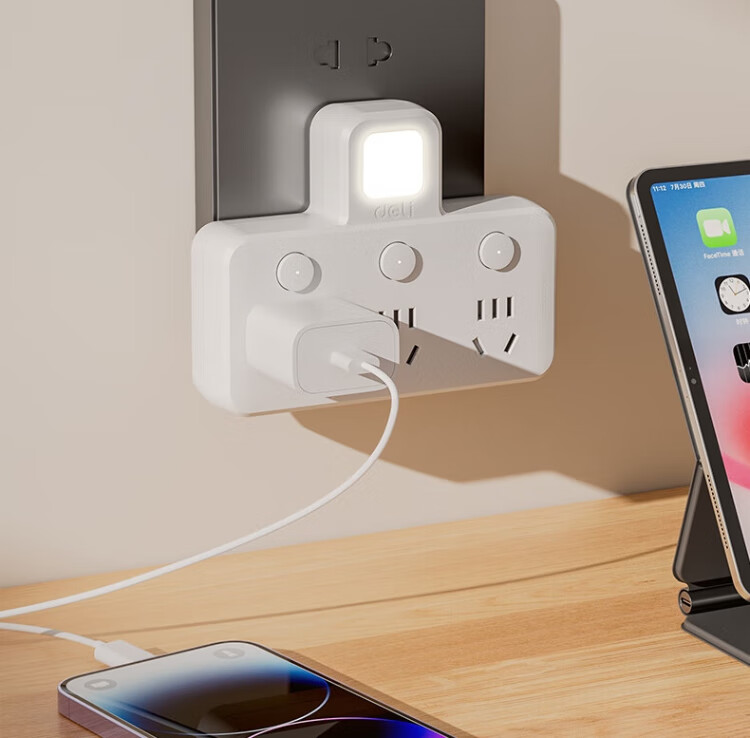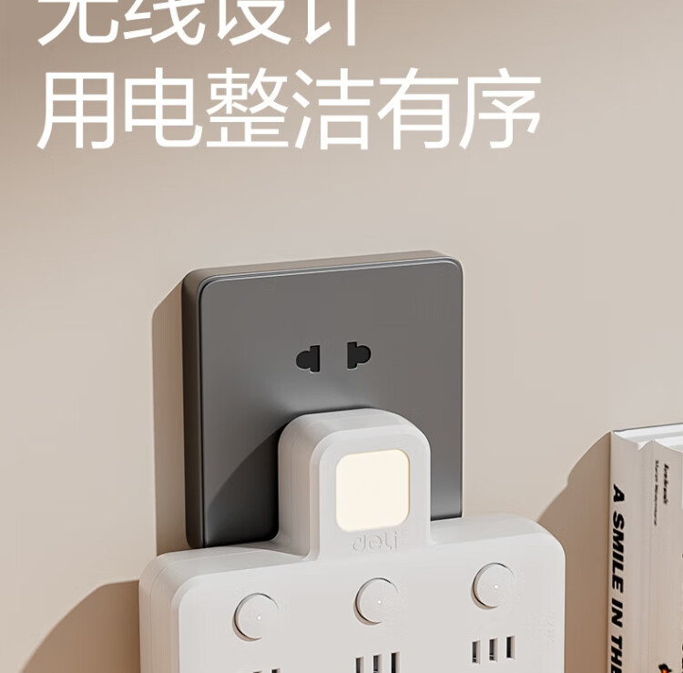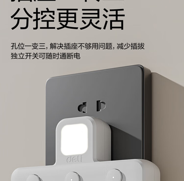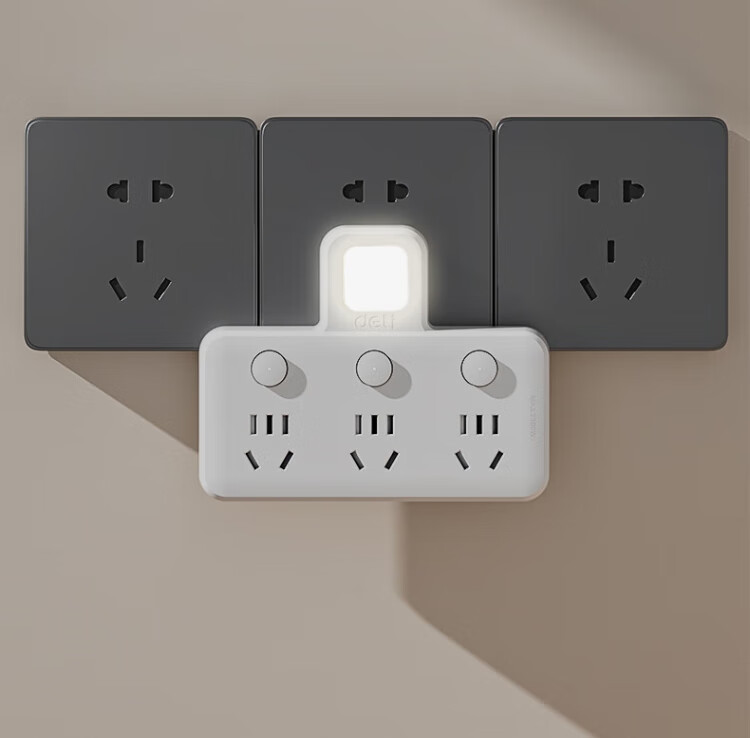 Deli-Steckdose nach nationalem Standard, glyphenförmige Funksteckdose/Umwandlungsstecker/Stromwandler/One-Turn-Mehrfachsteckdosen/Steckdosenreihe/Reihensteckdose, eins-zu-drei mit Nachtlicht LU5003
