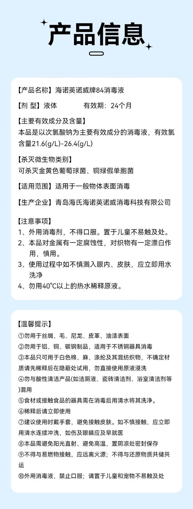 Haishi Hainuo 84 disinfectant 1500g clothing bleaching sterilizer influenza A disinfectant water home floor sterilization toilet deodorization