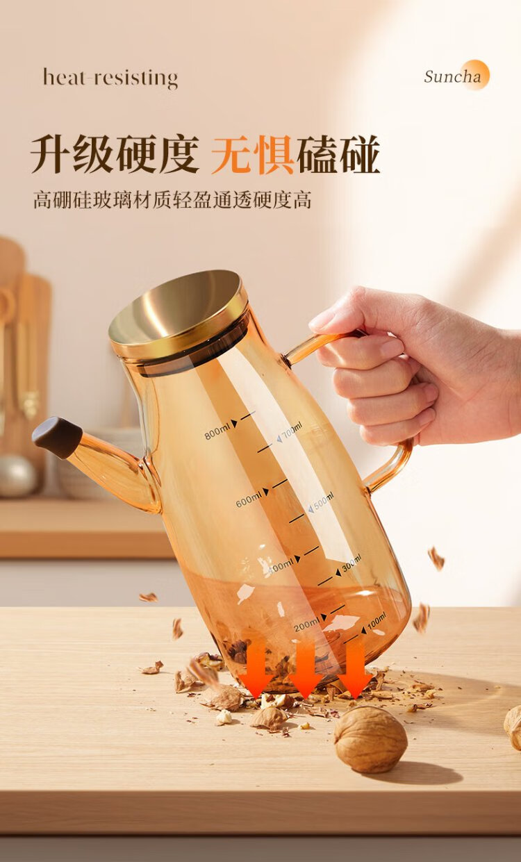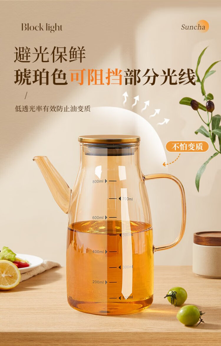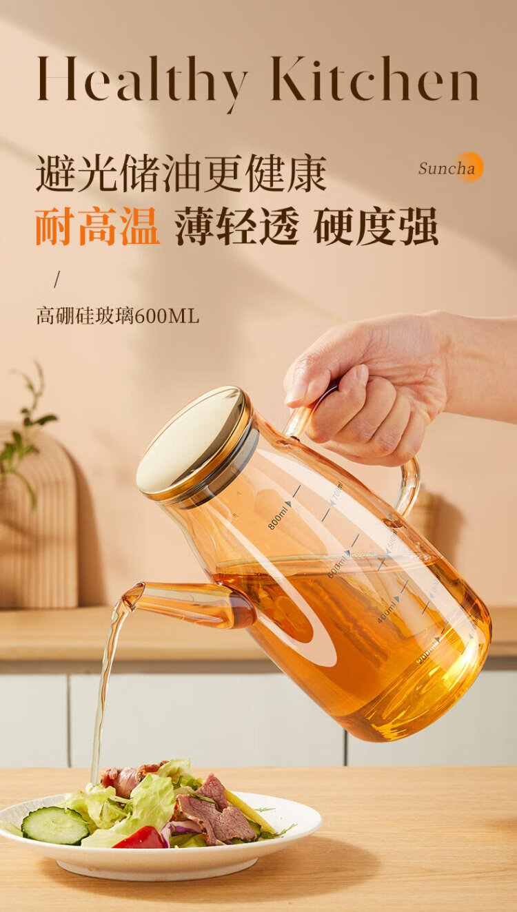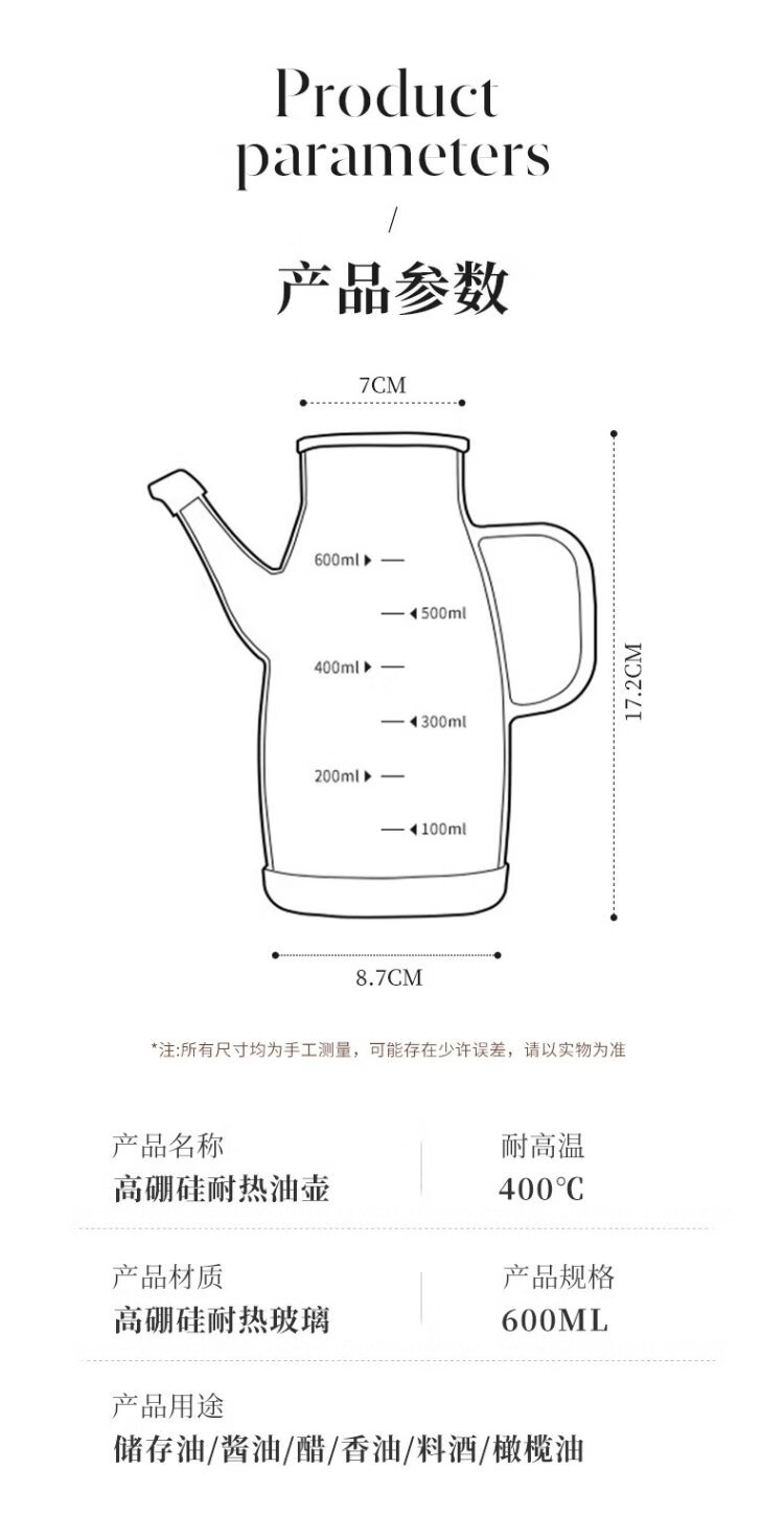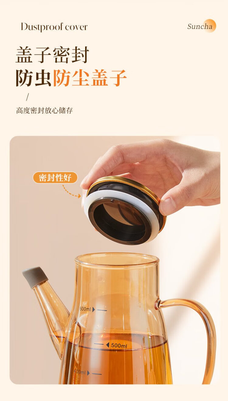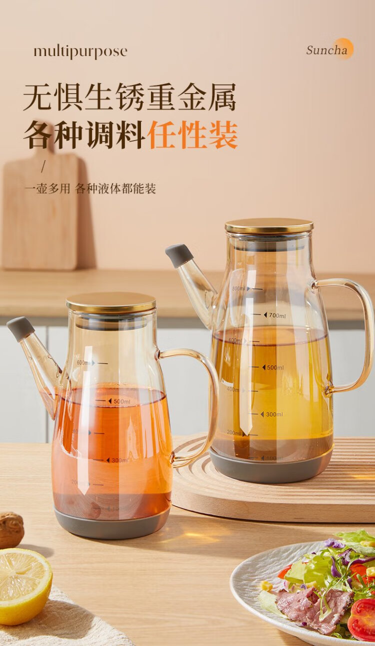 Double gun oil bottle household oil bottle kitchen leak-proof spout without hanging oil glass jar vinegar sesame oil soy sauce seasoning pot 600ml