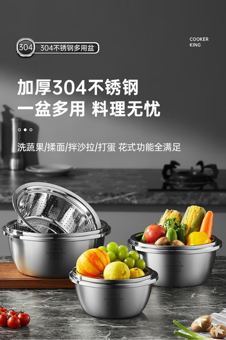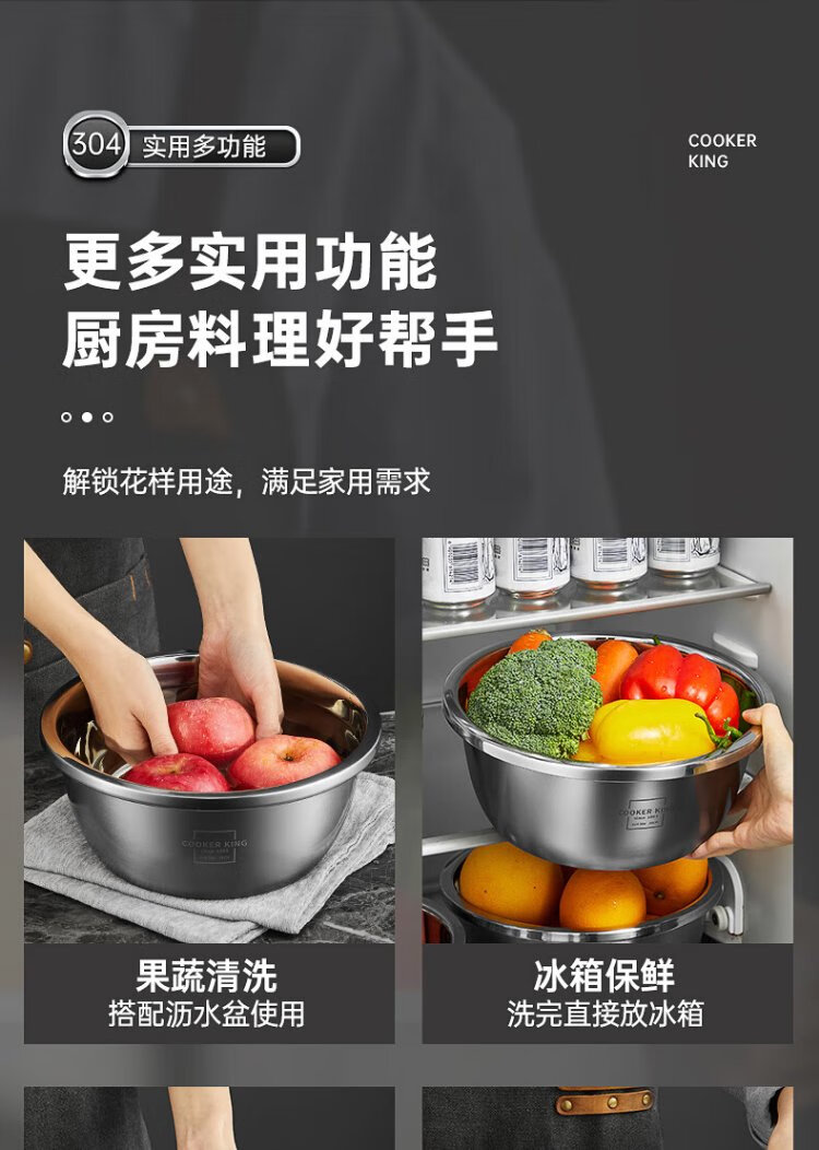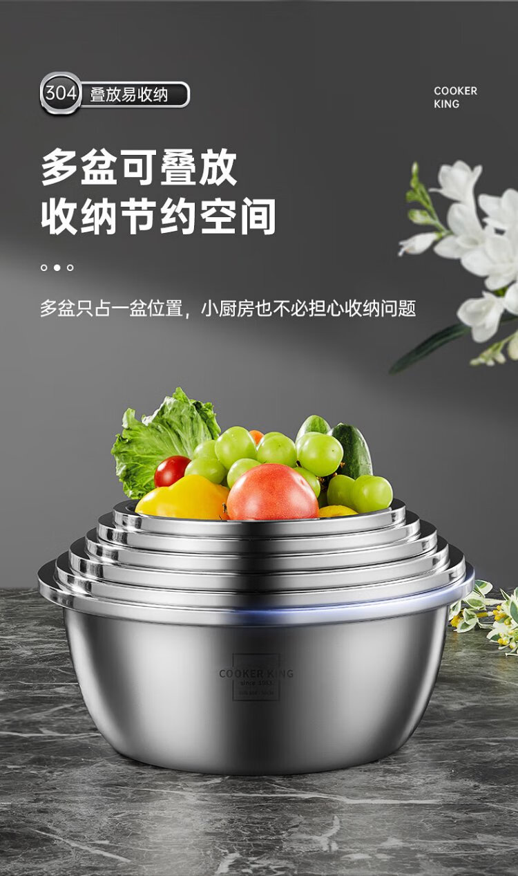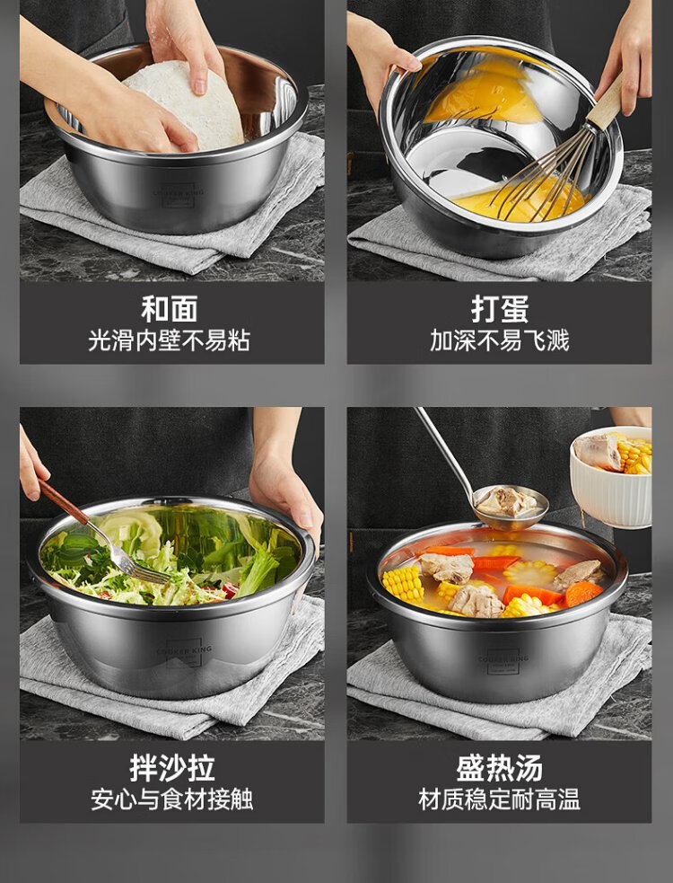Cui Dahuang thickened 304 stainless steel basin seasoning basin, sauce basin, salad basin and noodle marinated meat basin 30cm