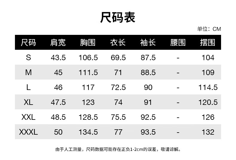 China(cm) 72-76 76-81 81-87 87-93 93-98