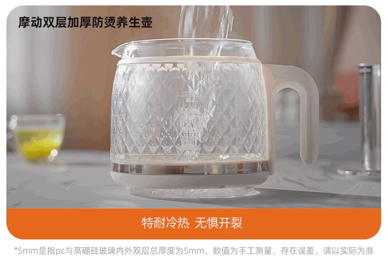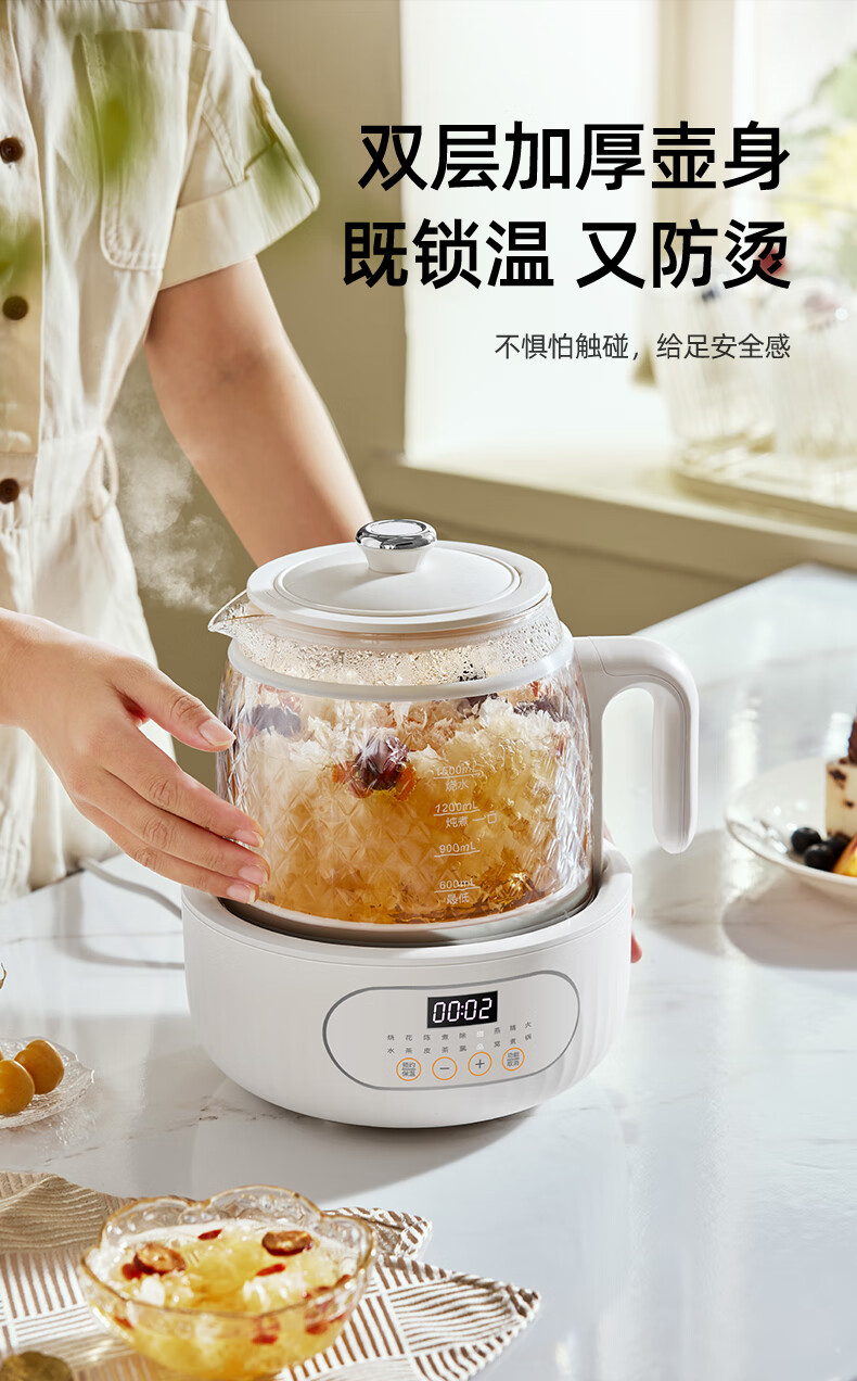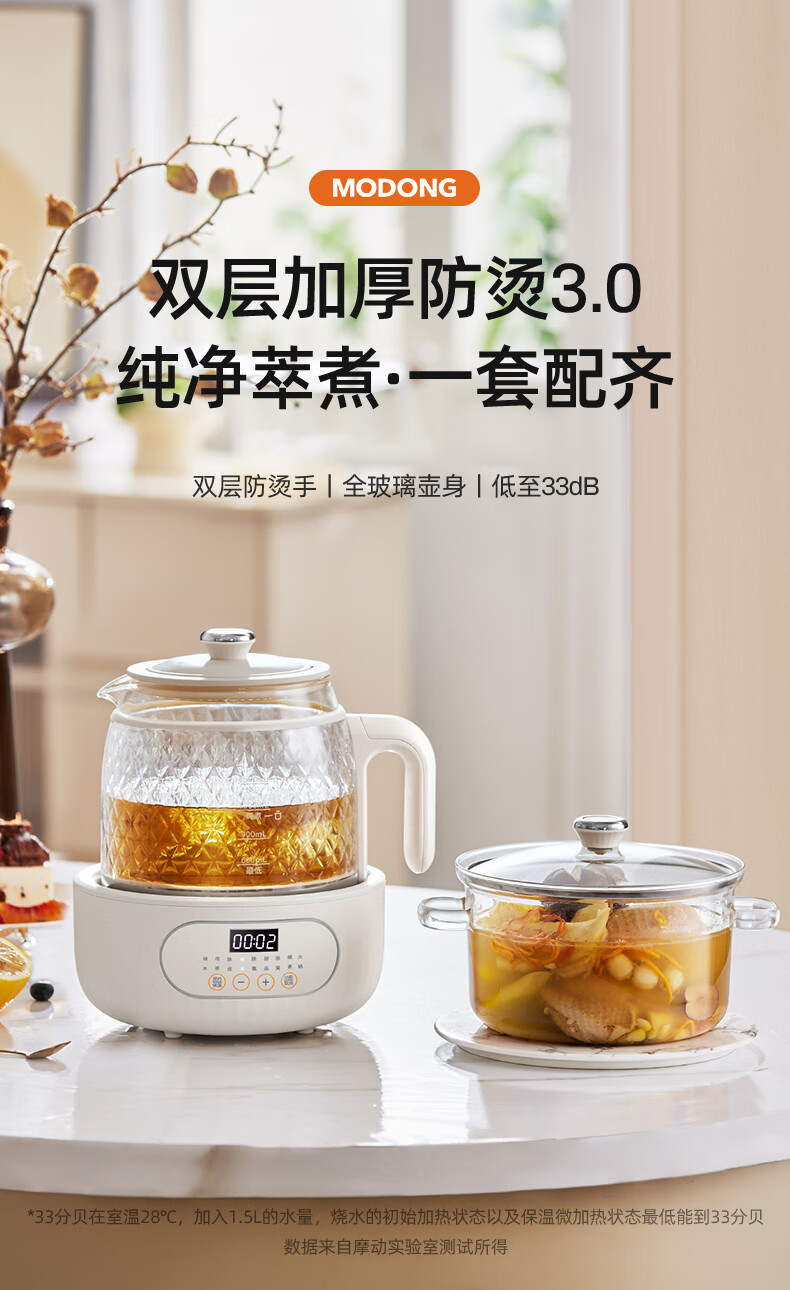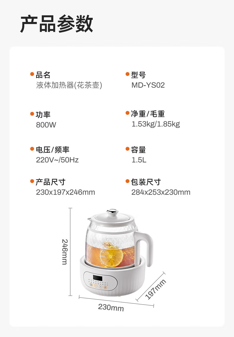 Modong all-glass health pot does not contain glue, boiling teapot, tea boiler, spray steaming teapot, 800W high-power boiling water and tea boiling all-in-one machine, 1.5L large capacity kettle MD-YS02