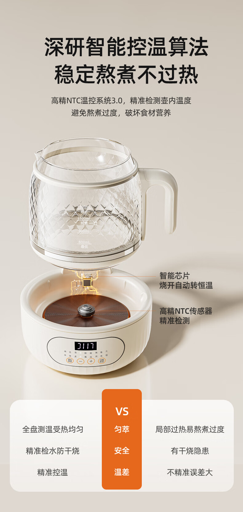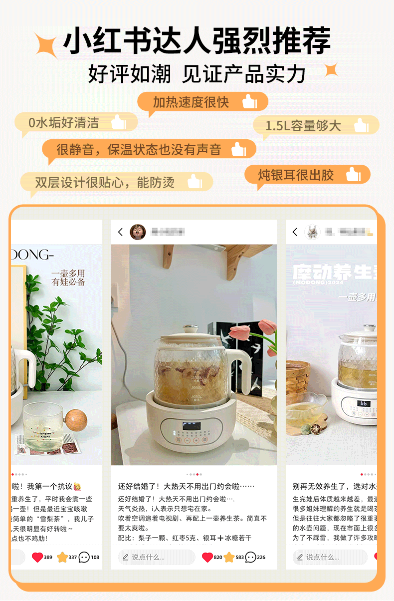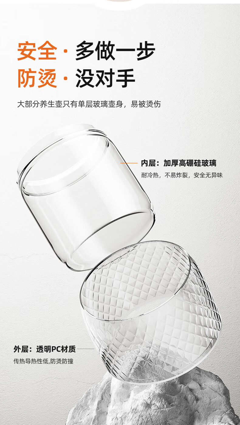 Modong all-glass health pot does not contain glue, boiling teapot, tea boiler, spray steaming teapot, 800W high-power boiling water and tea boiling all-in-one machine, 1.5L large capacity kettle MD-YS02