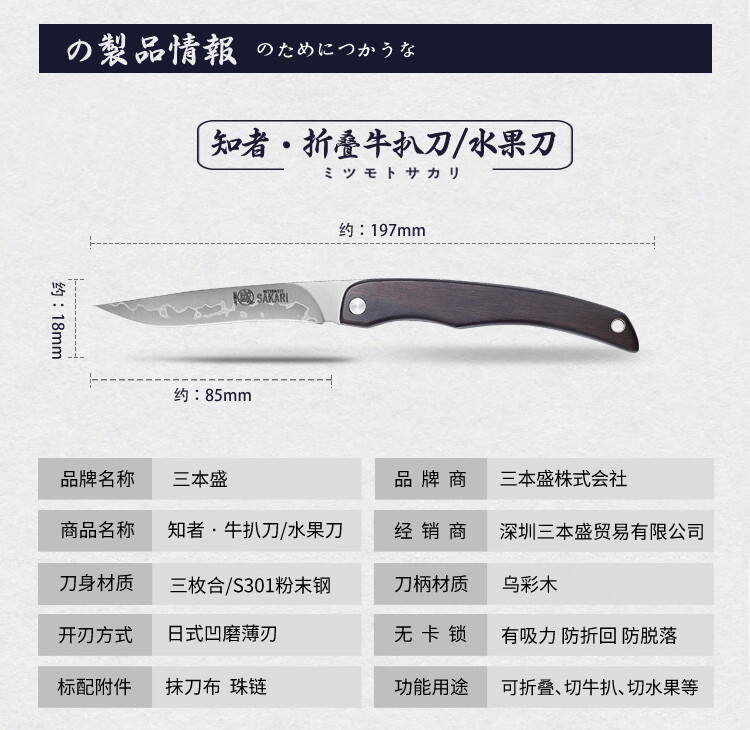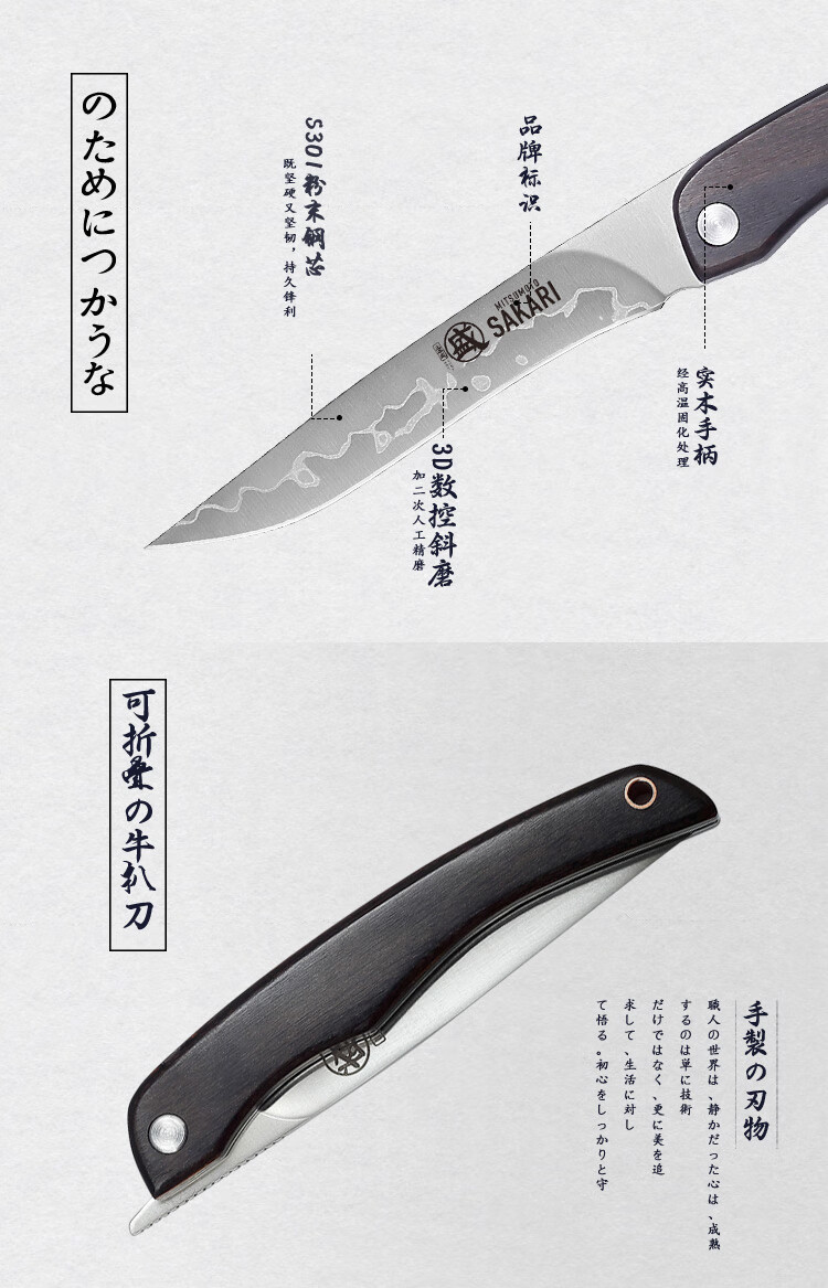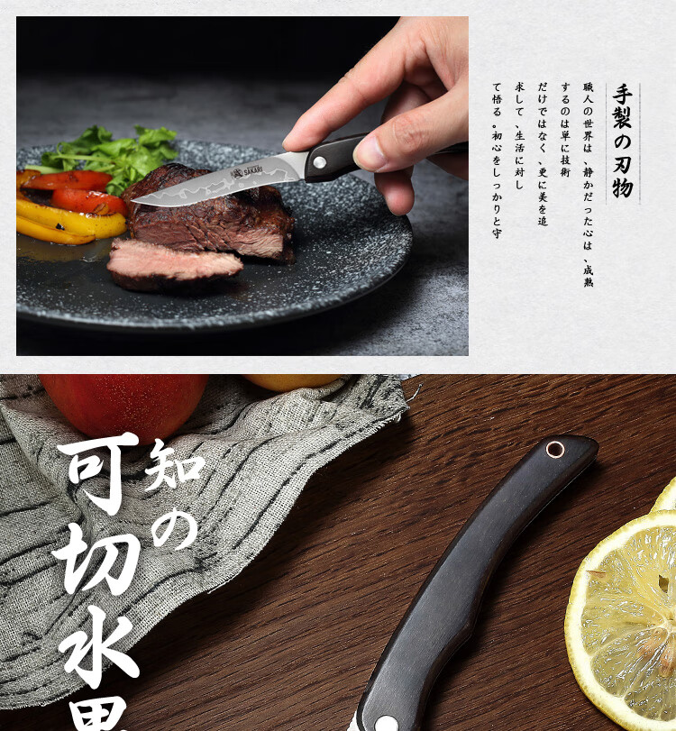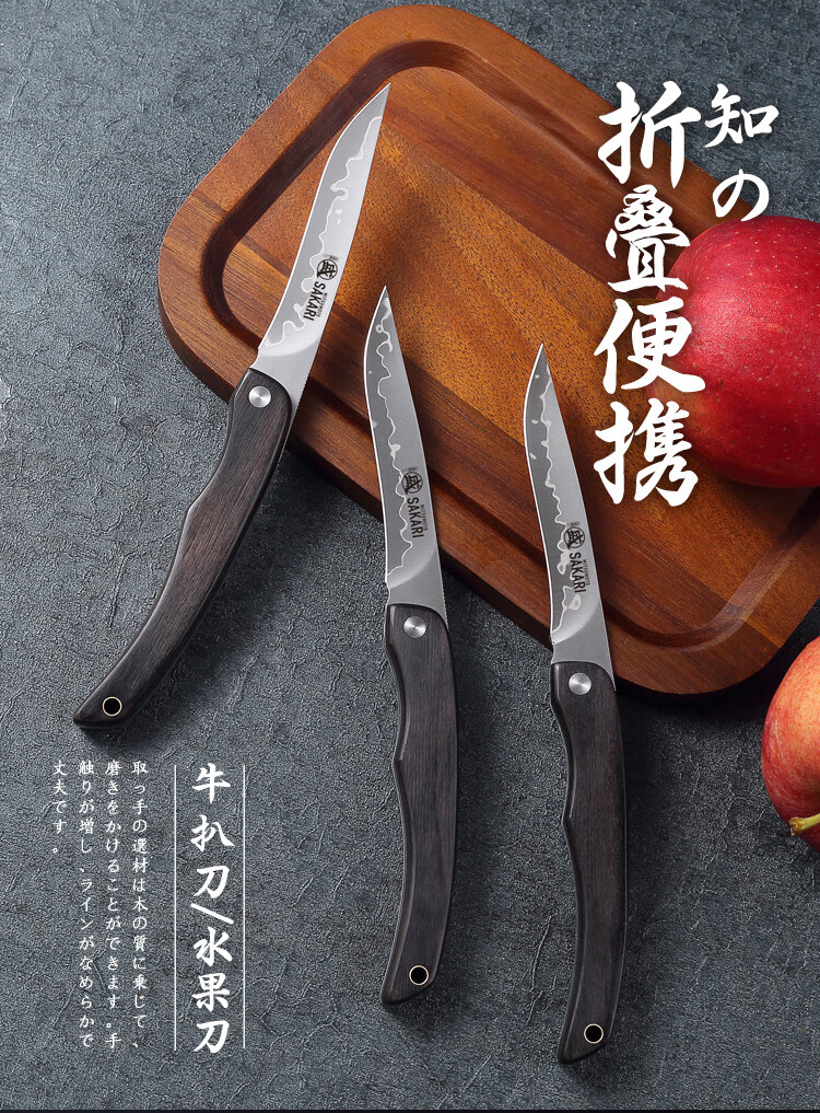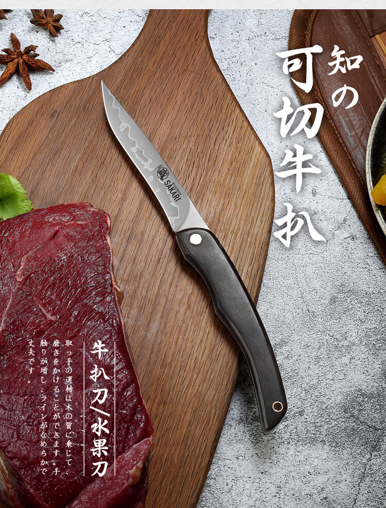 Sanbonsheng fruit knife folding knife paring knife imported from Japan powder steel steak knife portable outdoor picnic camping knife