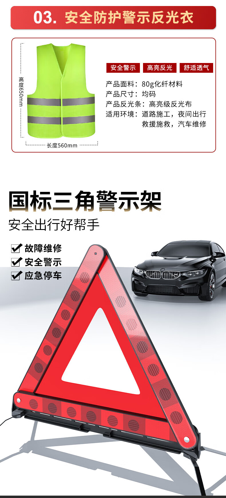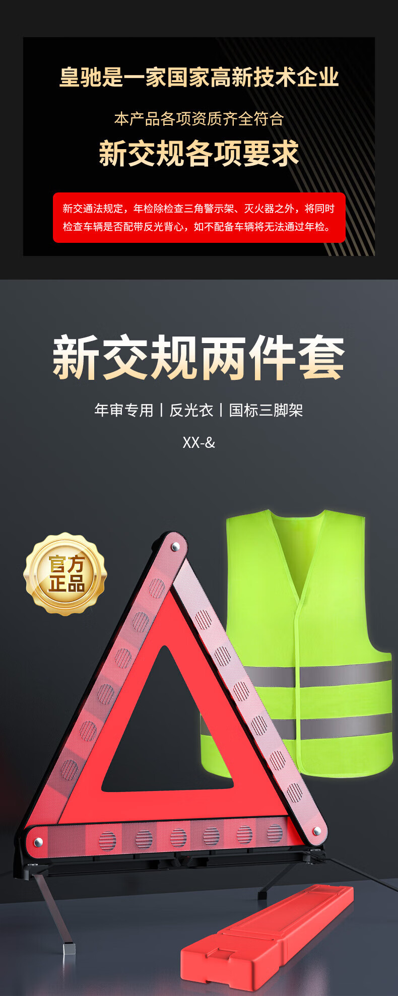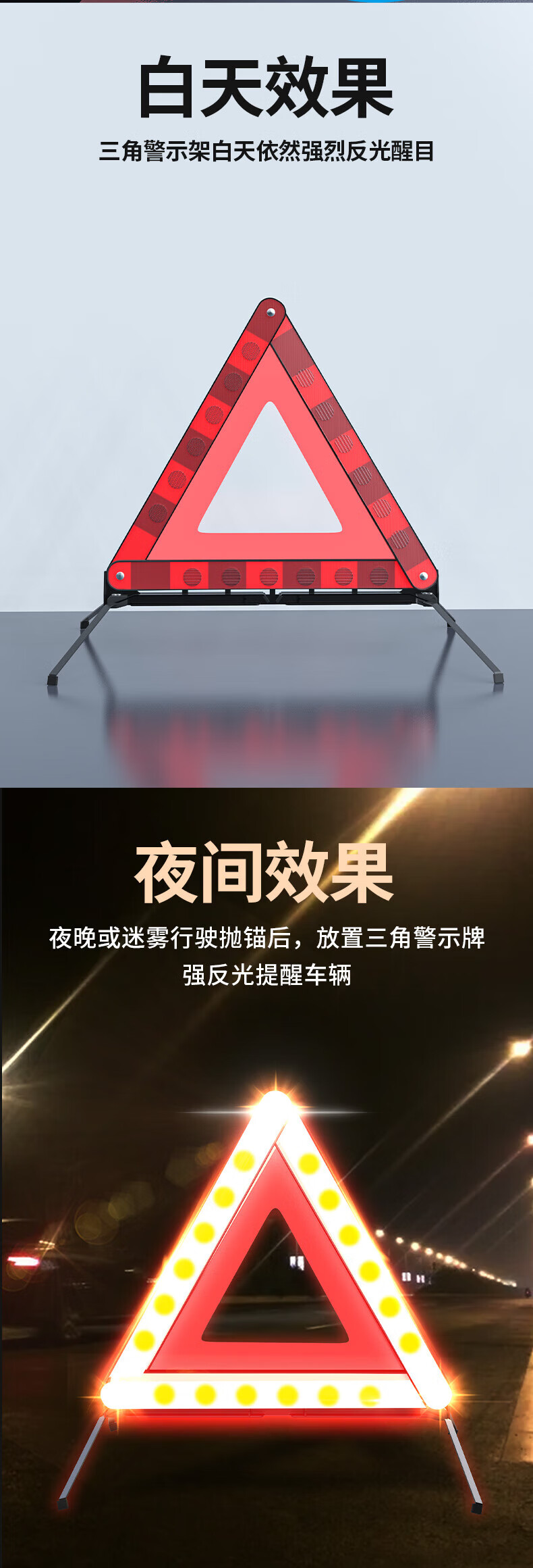Huangchi Tripod Car Tripod Warning Plate Reflective Vest Triangle Warning Frame Annual Inspection Essential 2-piece Set