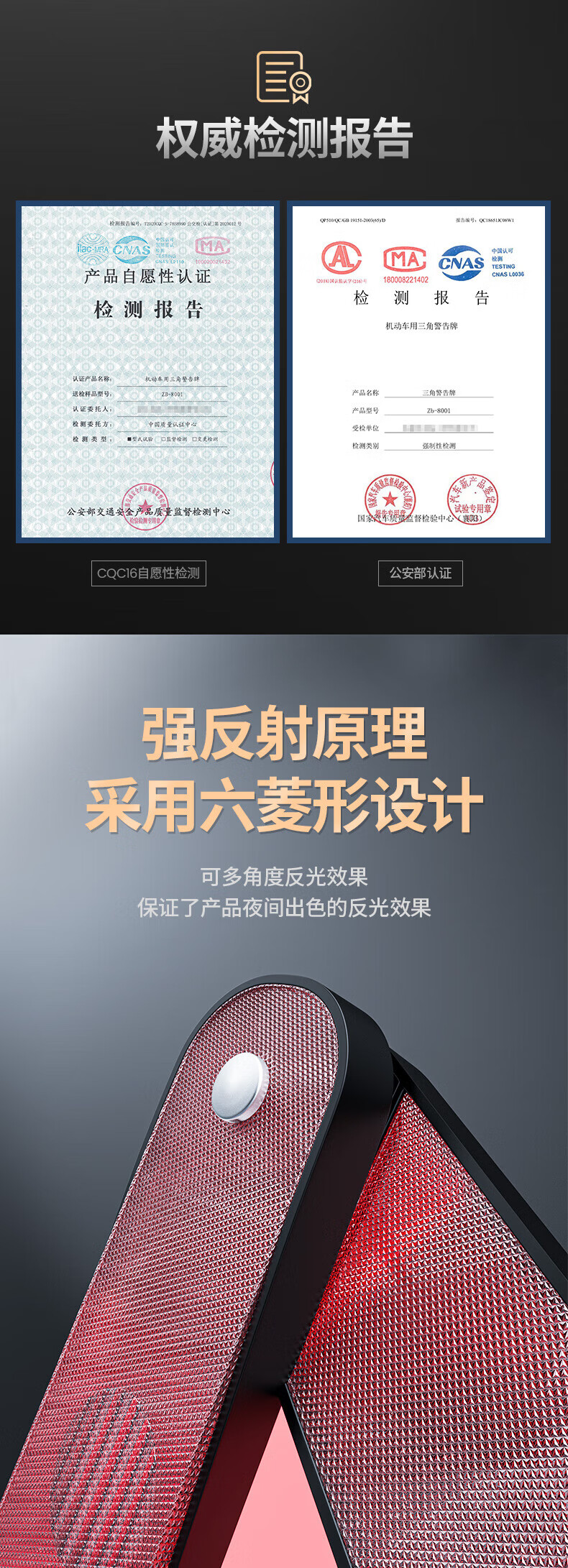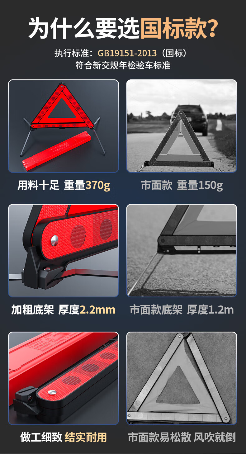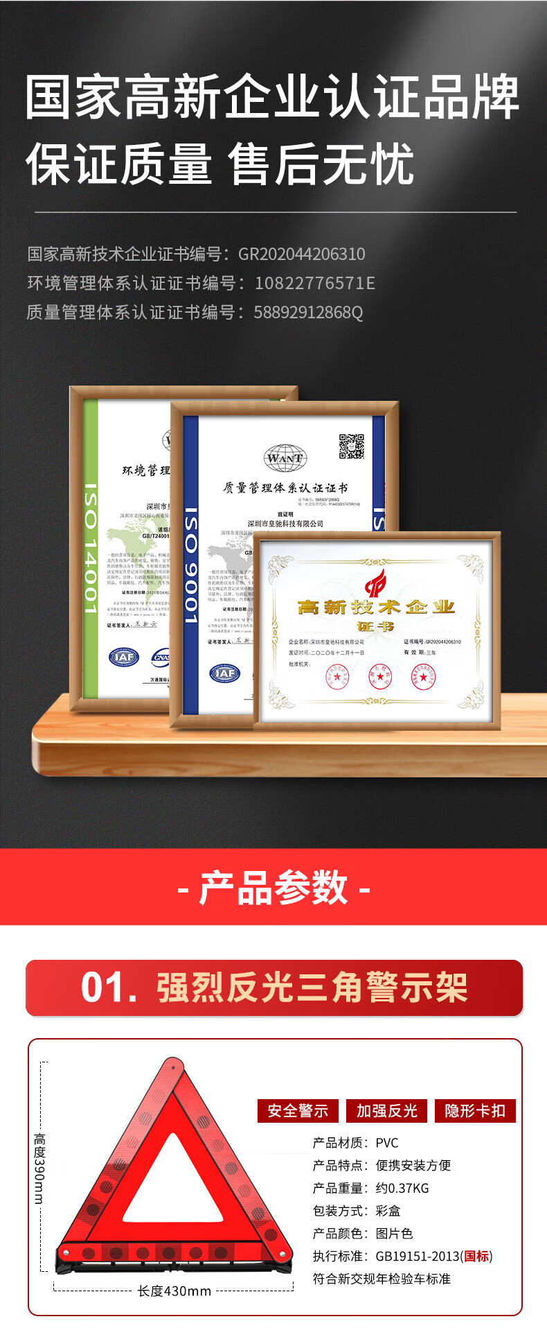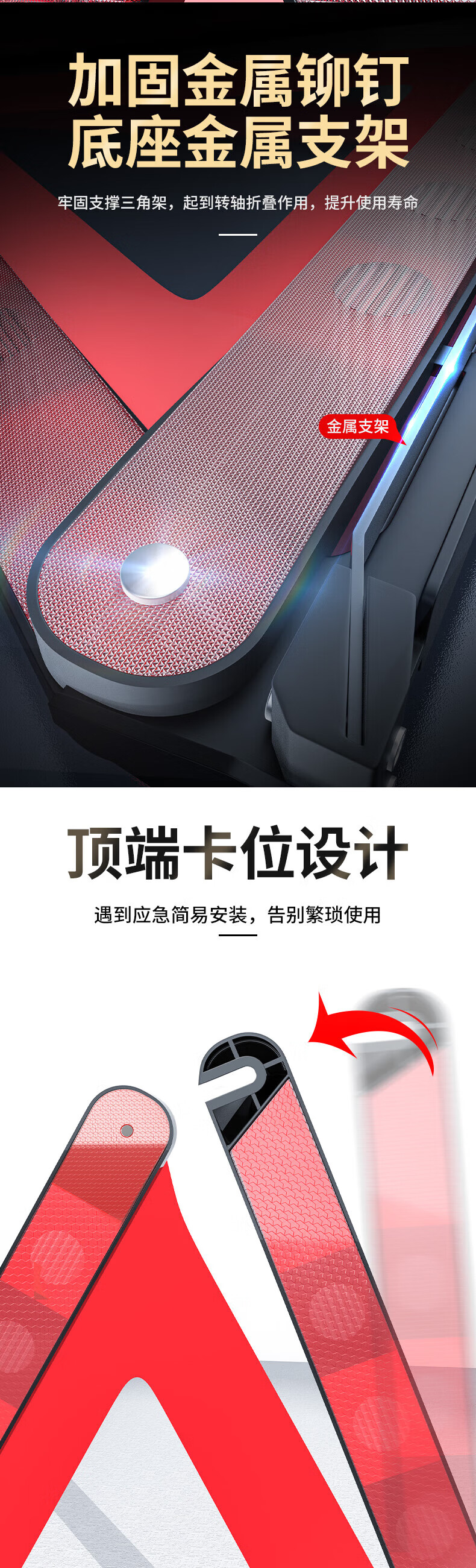 Huangchi Tripod Car Tripod Warning Plate Reflective Vest Triangle Warning Frame Annual Inspection Essential 2-piece Set