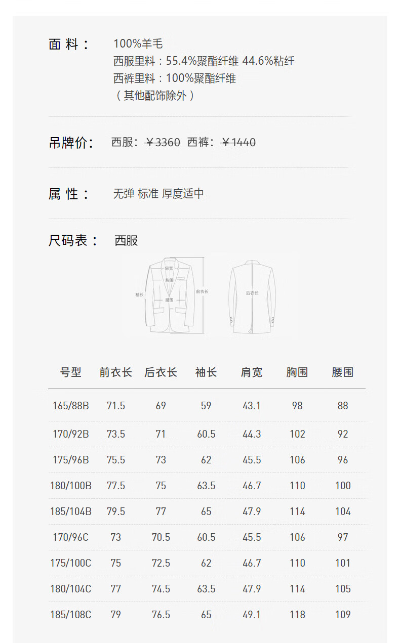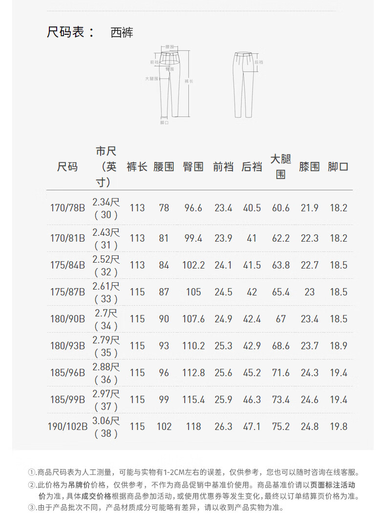 China (cm) 160-165/84-86 165-170 / 88-90 167-172 / 92-96 168-173 / 98-102 170-176 / 106-110