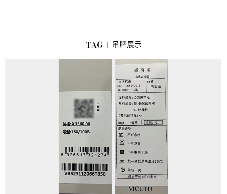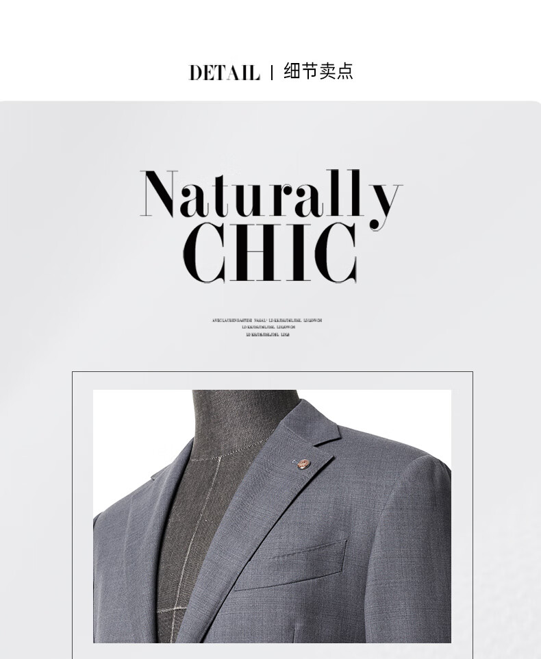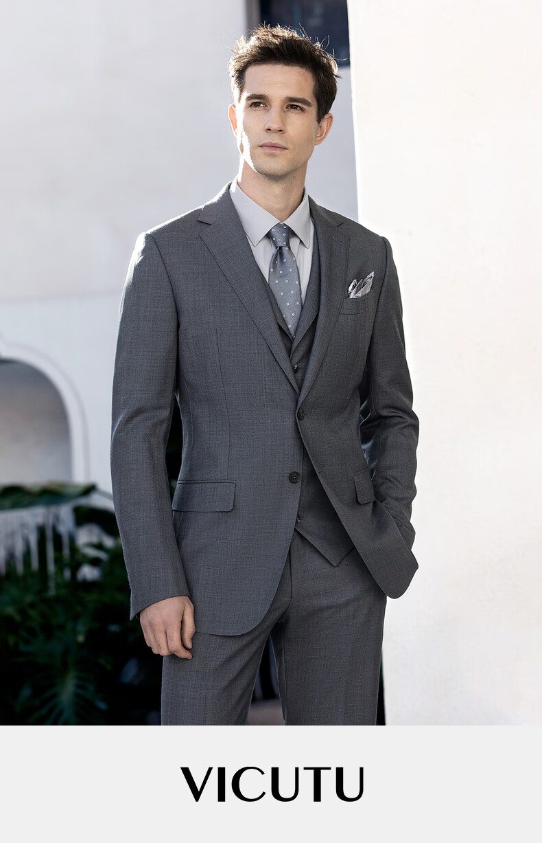 VICUTU men's suit top pure wool skin-friendly spring business casual all-match suit gray 180/100B