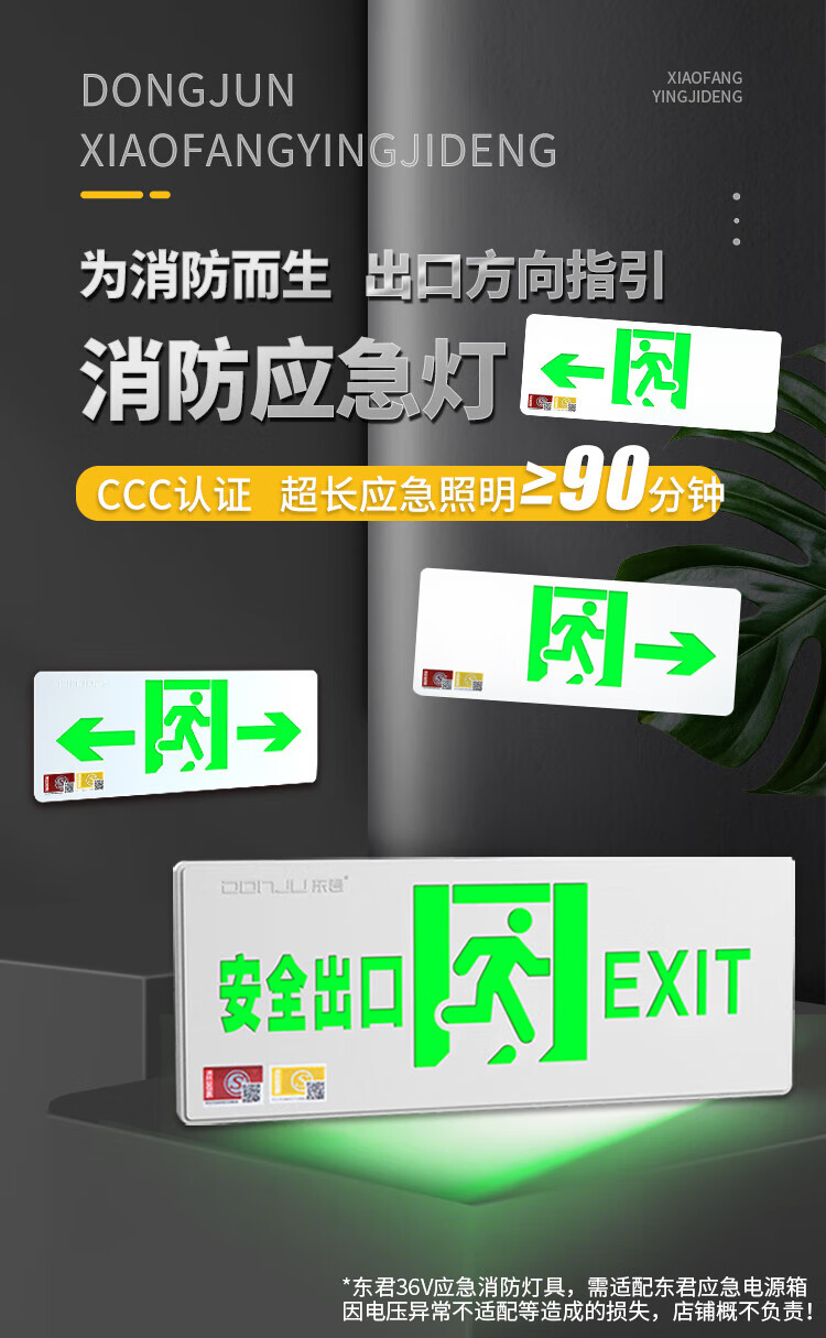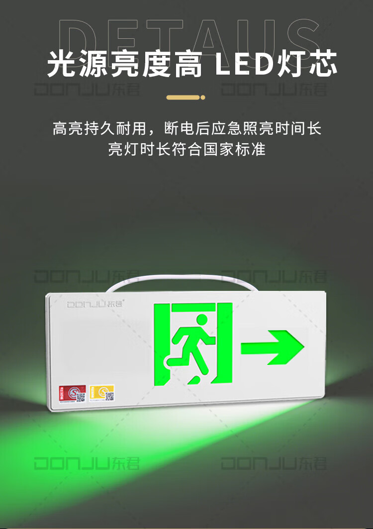 Dongjun Fire Safety Exit Indicator Light Emergency Escape Channel Lighting New National Standard LED Sign Light Commercial Floor Emergency Evacuation Lighting 220V-Single Side Right