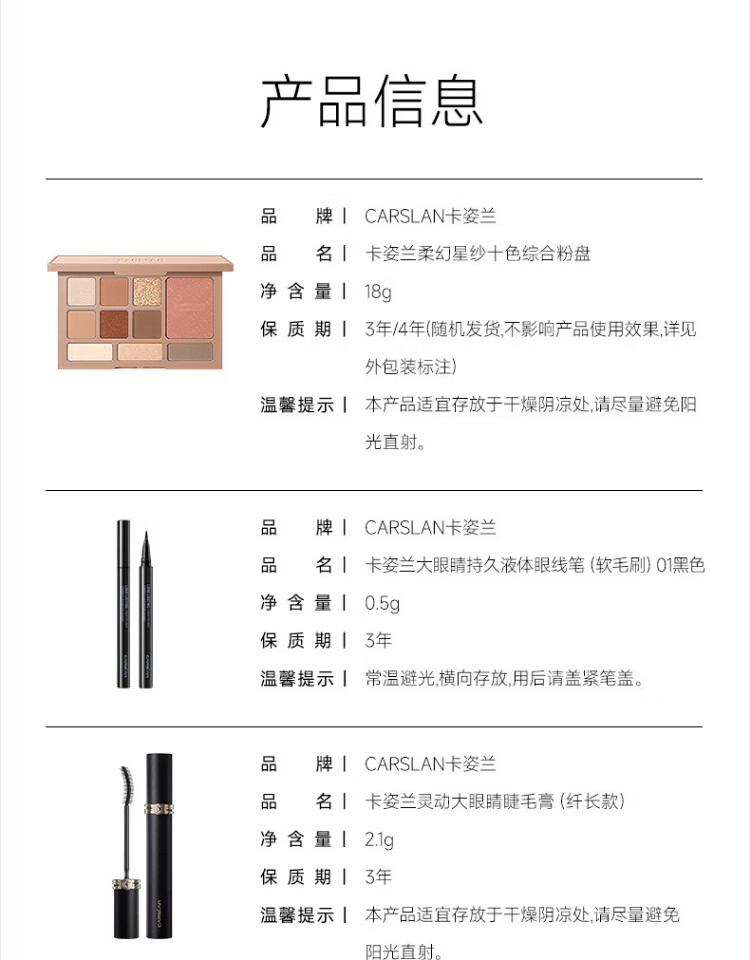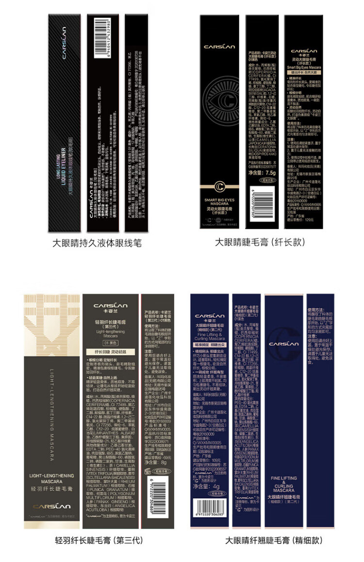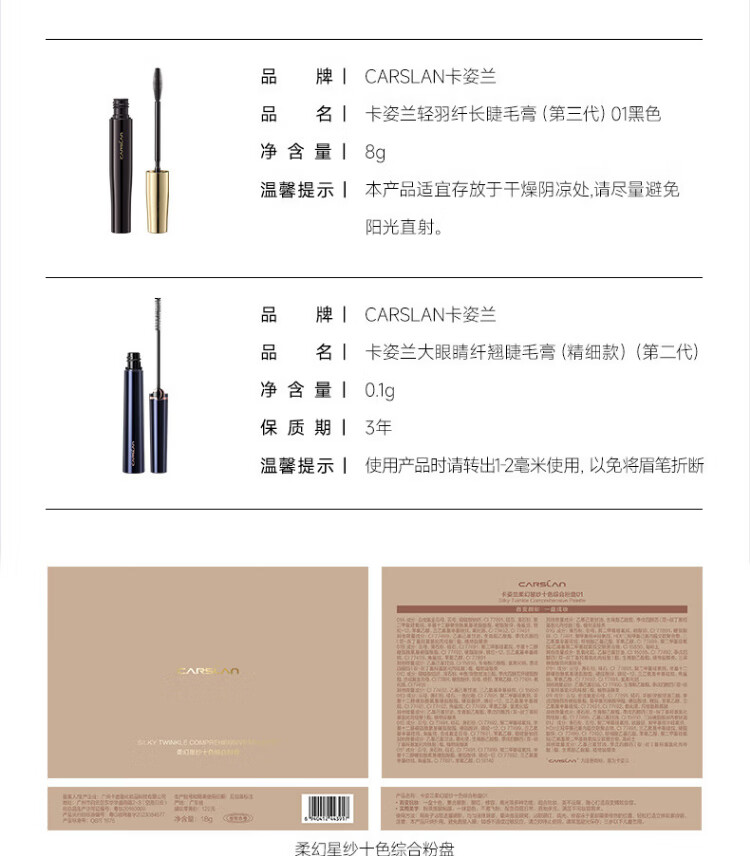 Carslan big eyes 2-piece set (Slim fine mascara 4g long-lasting liquid eyeliner 0.5ml) New Year's gift for girls