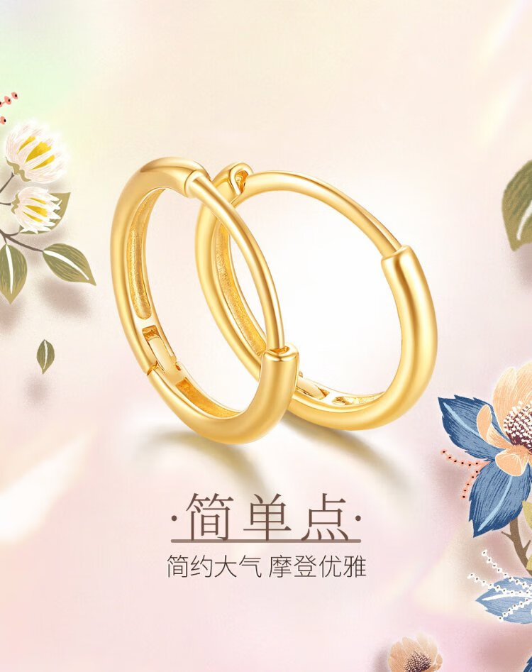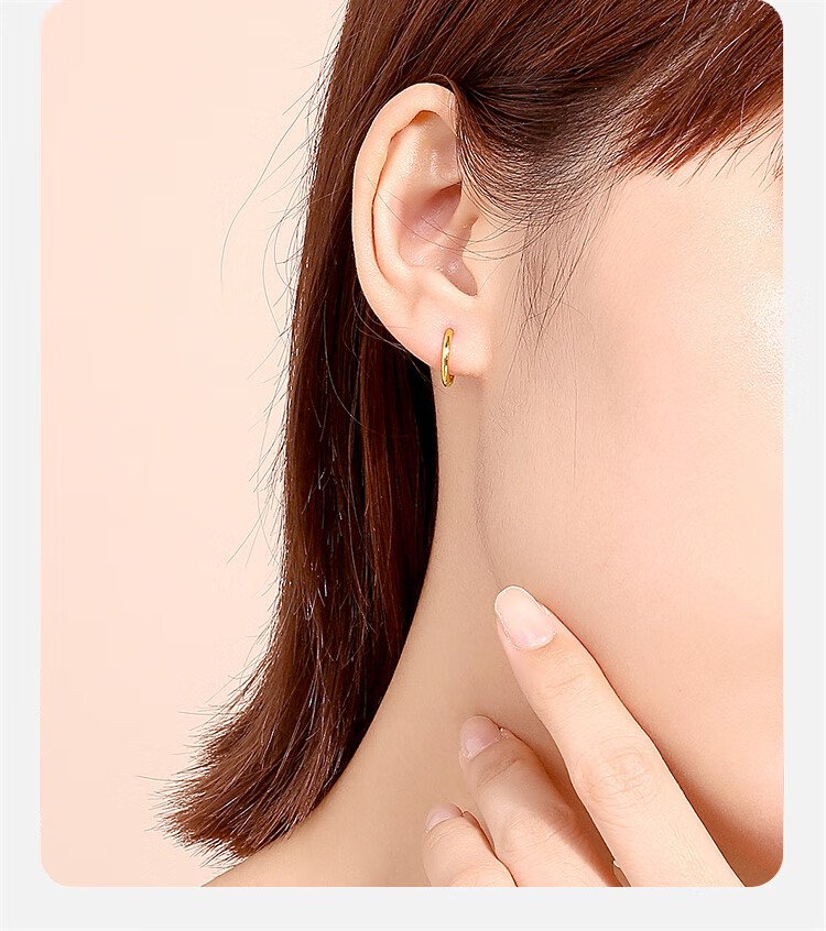 Safir birthday gift 18K gold earrings for men and women, simple color gold earrings, fashionable earrings, birthday gift, K yellow pair