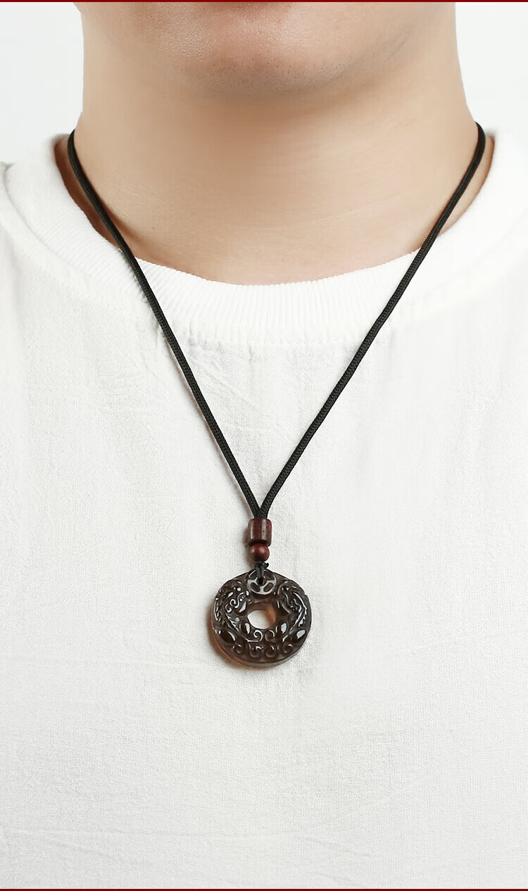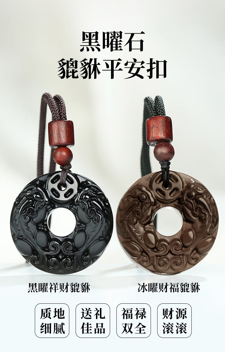 Phoenix Jewelry Natural Obsidian Pixiu Peace Buckle Pendant Men and Women Jade Pendant Jade Necklace Holiday Birthday Gift