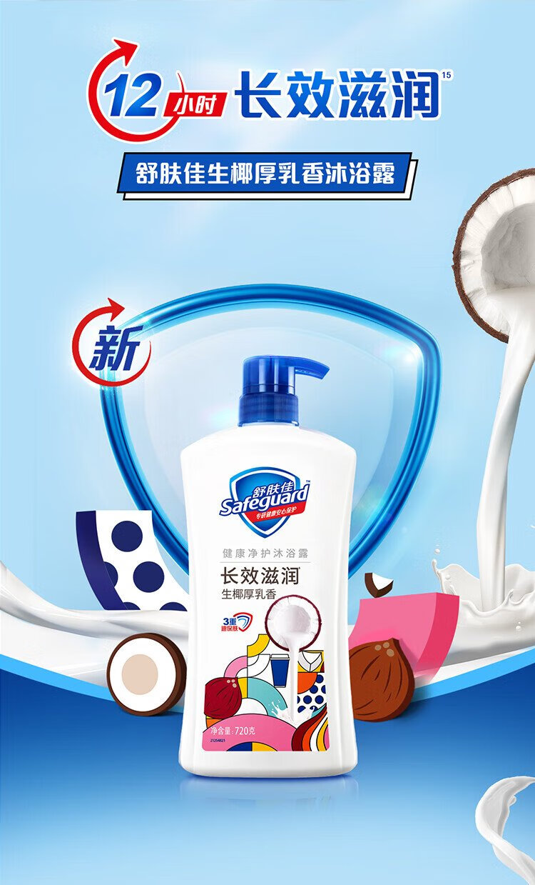 Safeguard Healthy Purifying Shower Gel Raw Coconut Thick Frankincense 1kg Long-lasting Moisturizing Shower Lotion for Men and Women