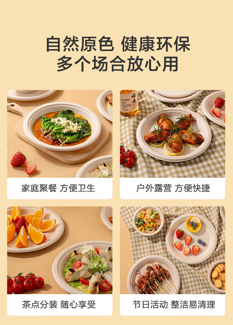 Made in Tokyo, disposable plates, bowls, dinner plates, tableware, large food-grade barbecue camping paper plates, 9 inches, 50 pieces