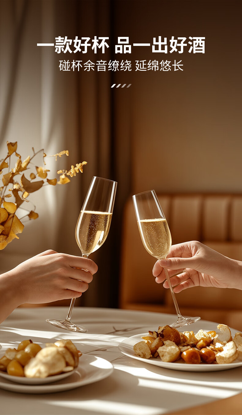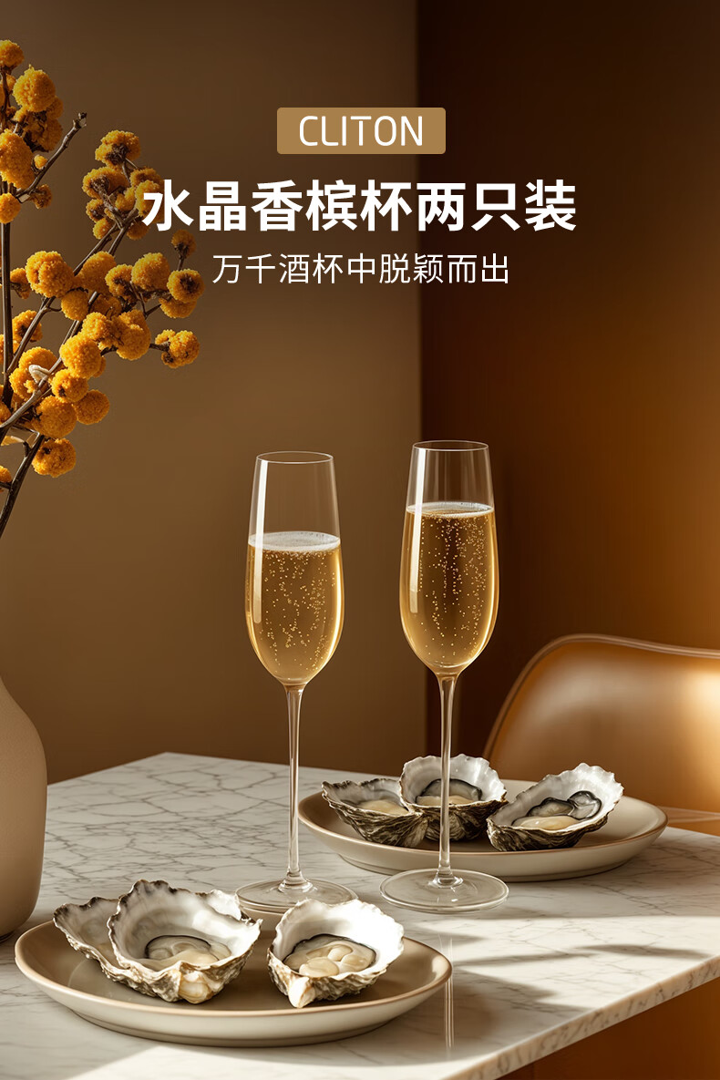 CLITON crystal champagne glass set, European red wine and white wine glass goblets, a pair of sparkling wine glasses, 2 pieces