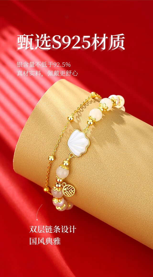 The only (Winy) lifetime sterling silver bracelet for women, birthday gift, Hetian jade bracelet for girls, girlfriends and wives, light luxury jewelry