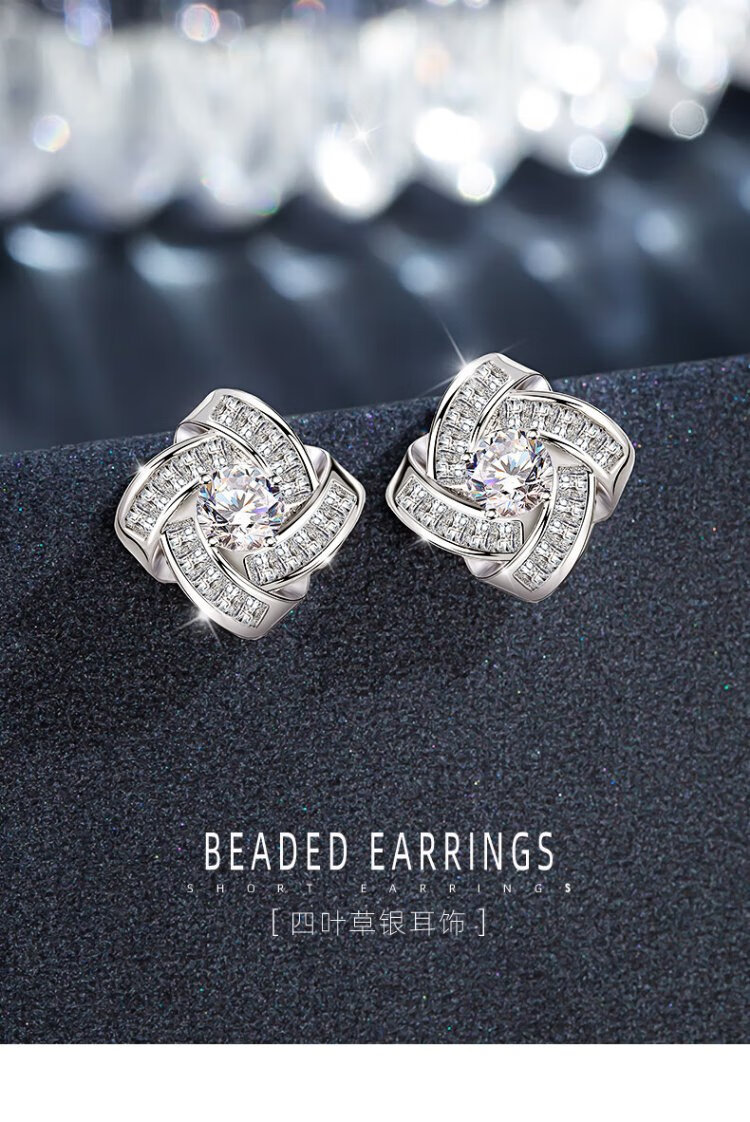 Qlady four-leaf clover silver earrings, feminine and high-end, 2024 new style 925 silver needle earrings, light luxury earrings, birthday gift