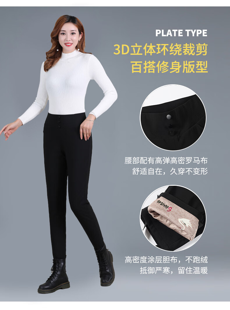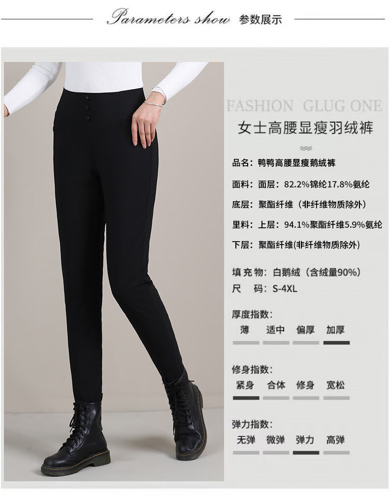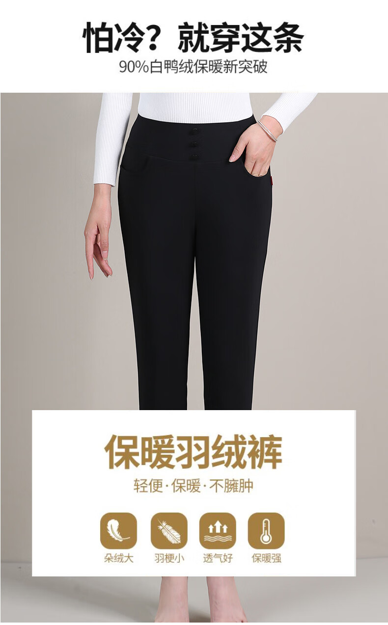 Yaya (YAYA) down pants women's slim fit thickened small feet high waist elastic warm winter new casual pants 902F black XL