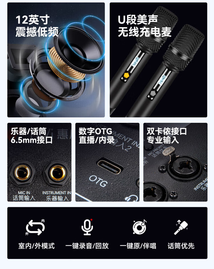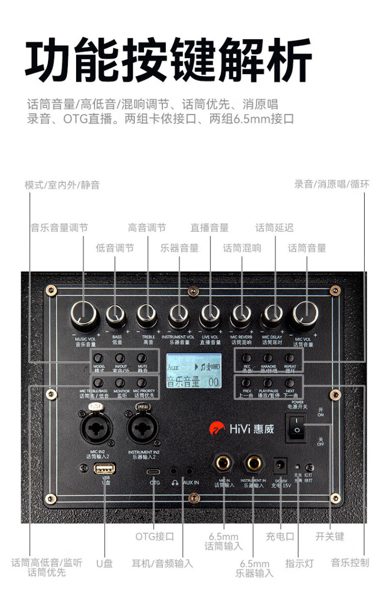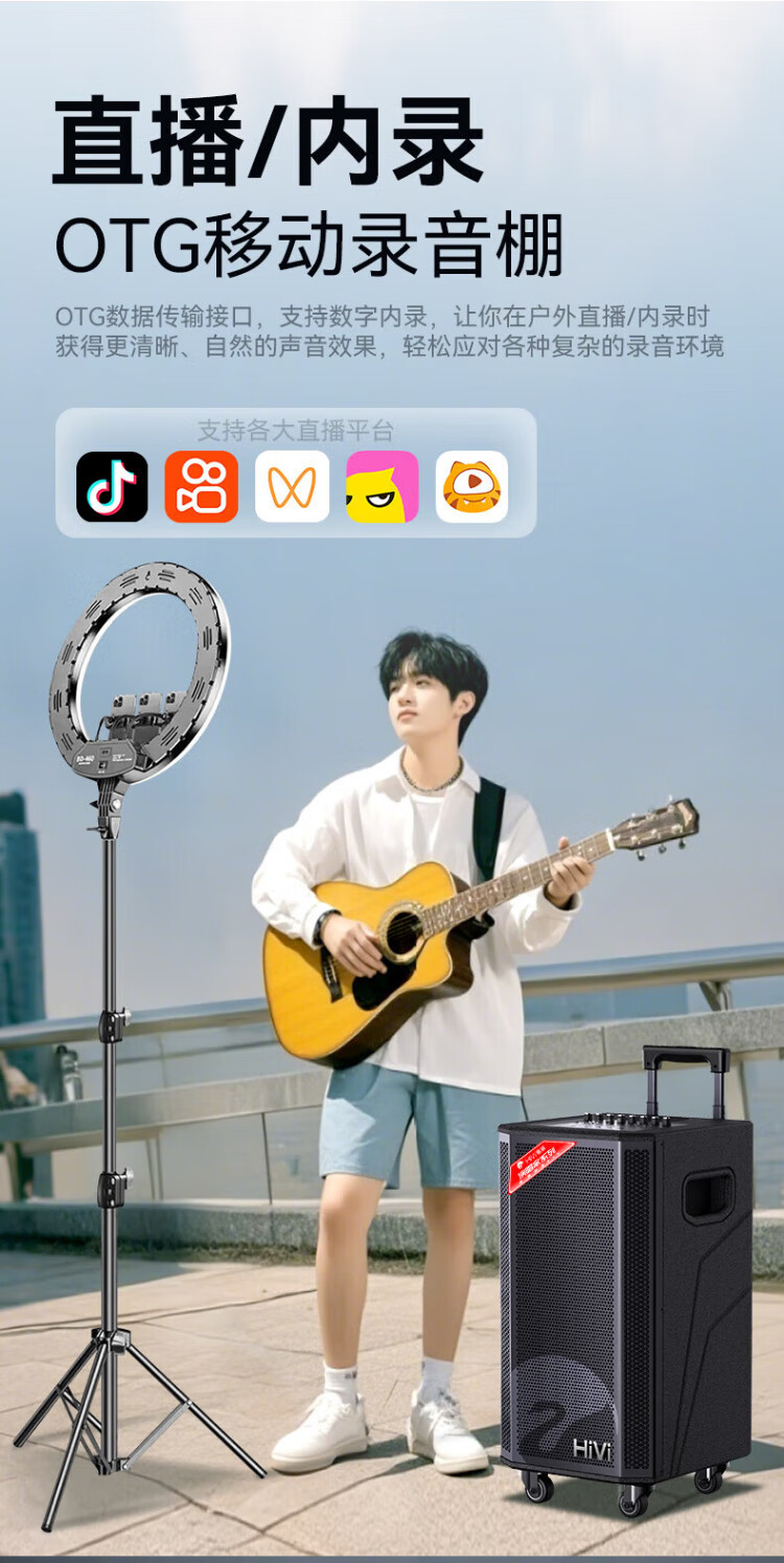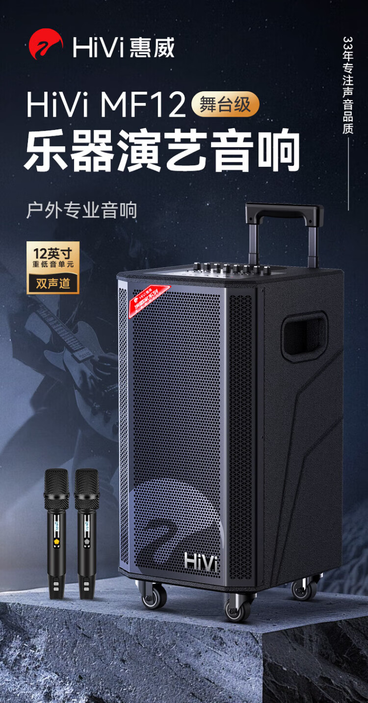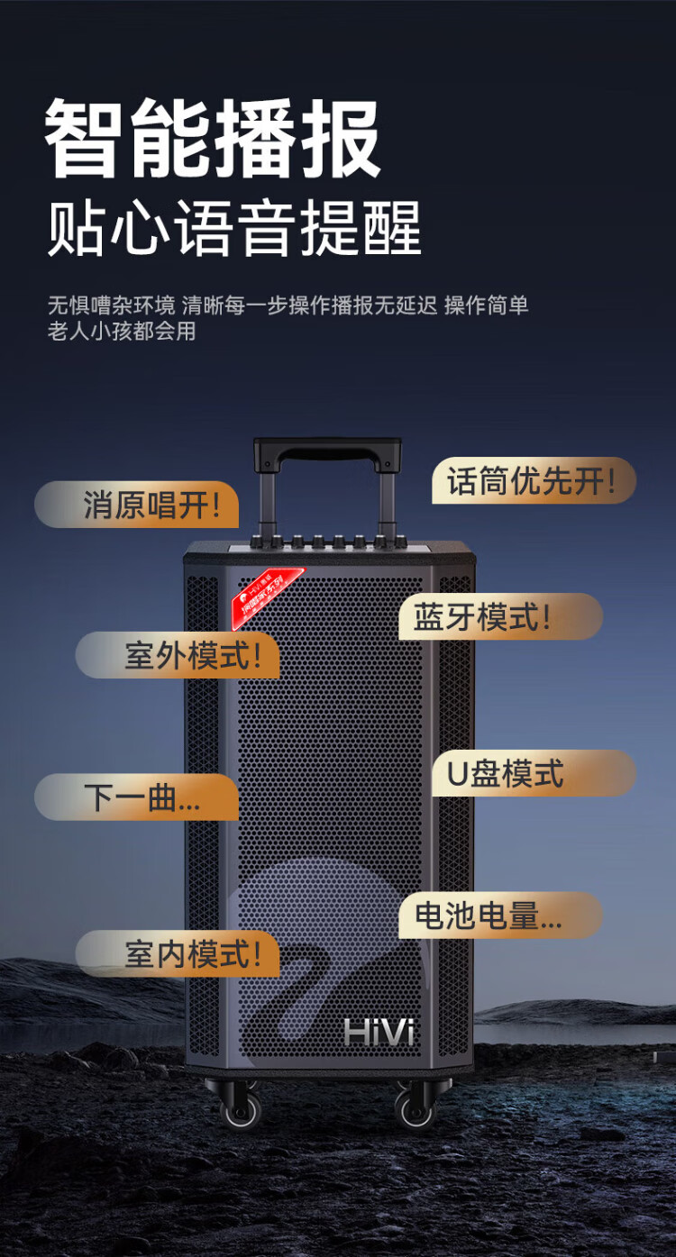 HiVi Outdoor Trolley Speaker Square Dance Singing Karaoke Speaker Karaoke Microphone Amplifier All-in-one Professional Instrument Performance Grade Bluetooth Connection MF12