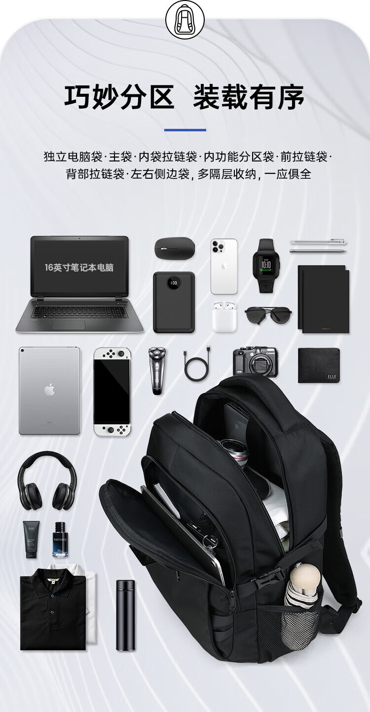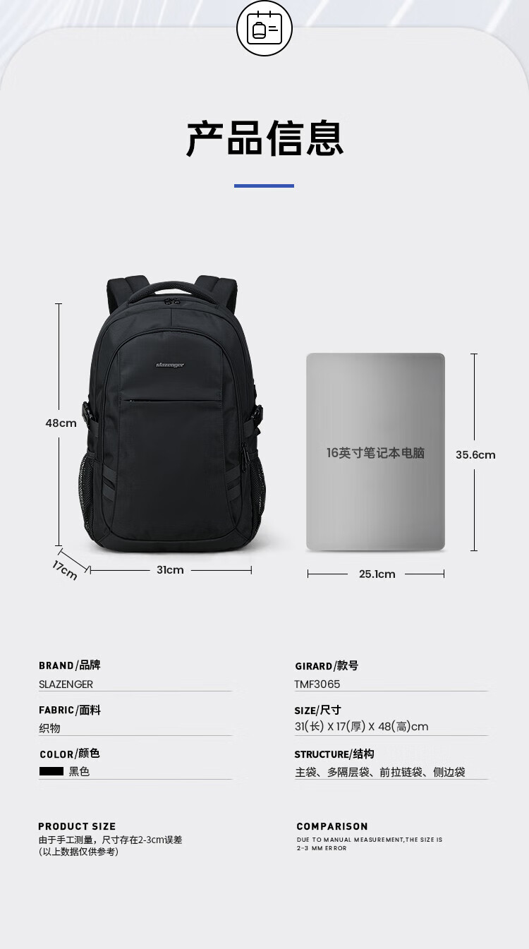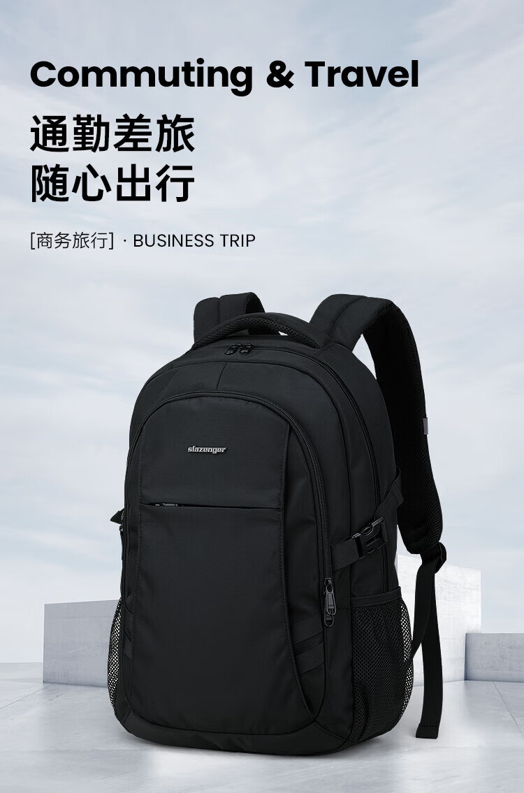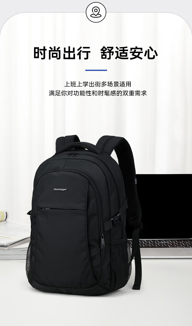 Slazenger men's backpack, middle and high school student school bag, large capacity travel backpack, 16-inch business commuter computer bag