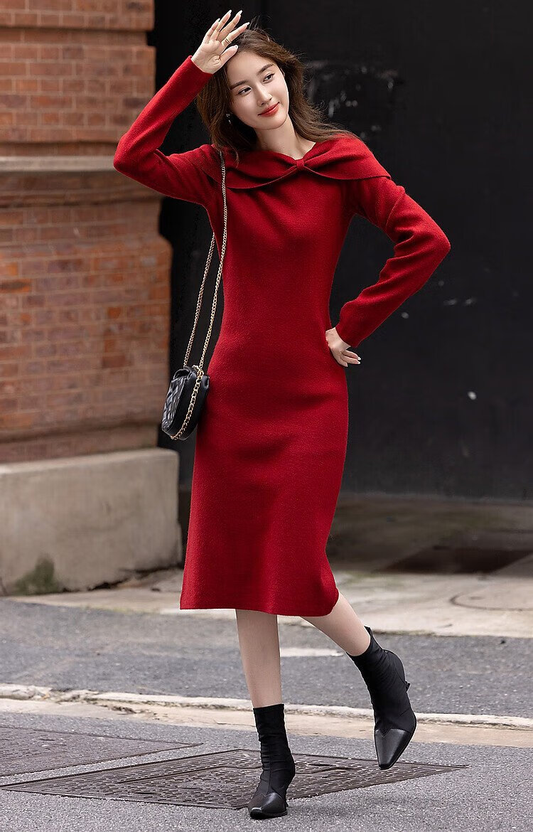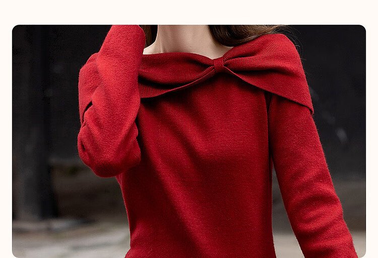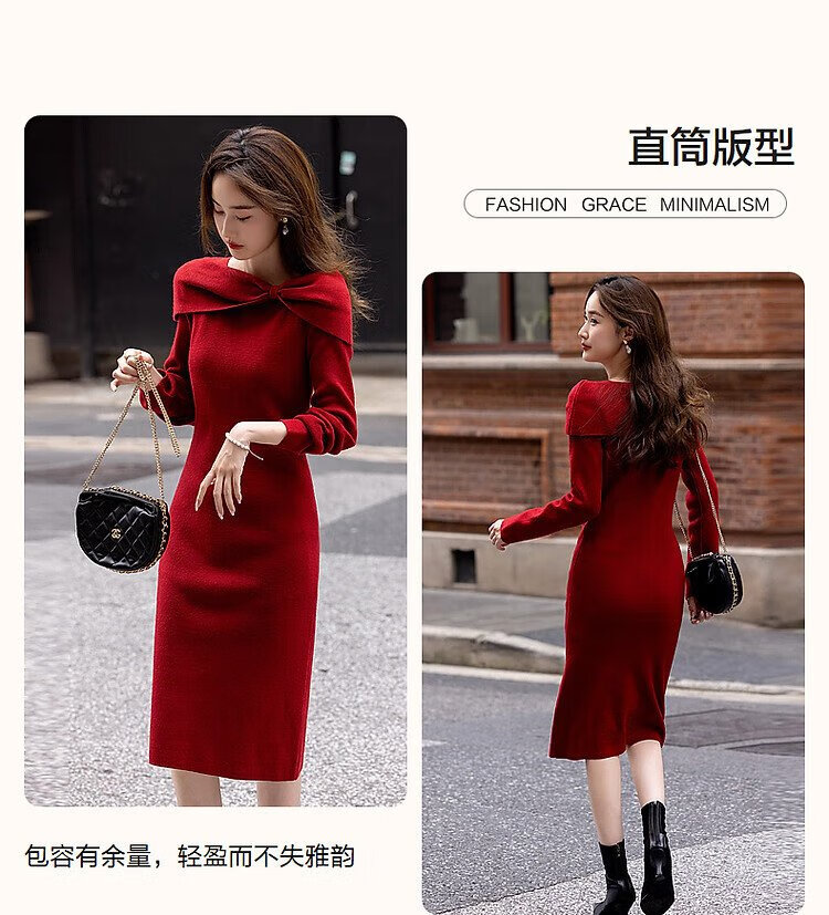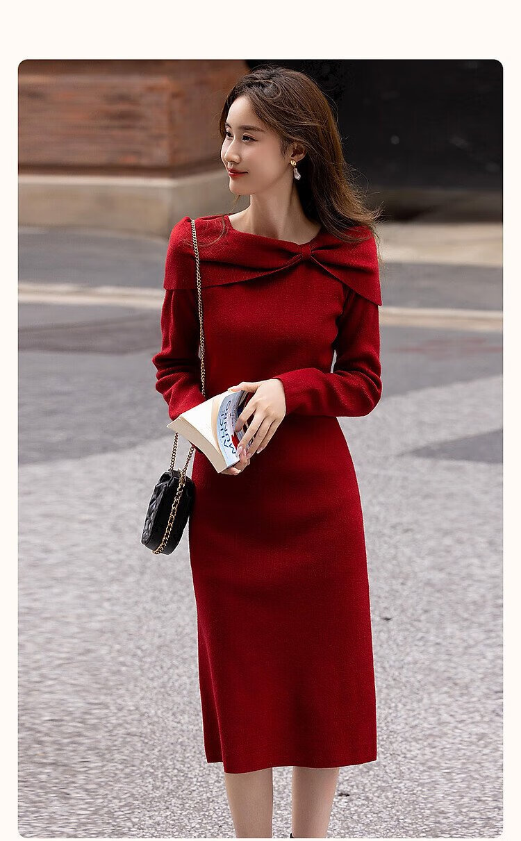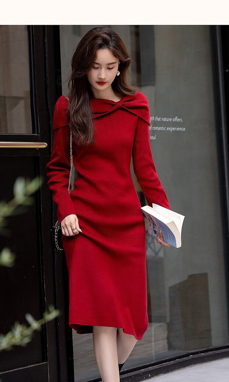 Demana Kim Secretary Outfit Autumn and Winter French Intellectual Little Woman Butterfly One-Neck Knitted Mid-Length Women's Dress