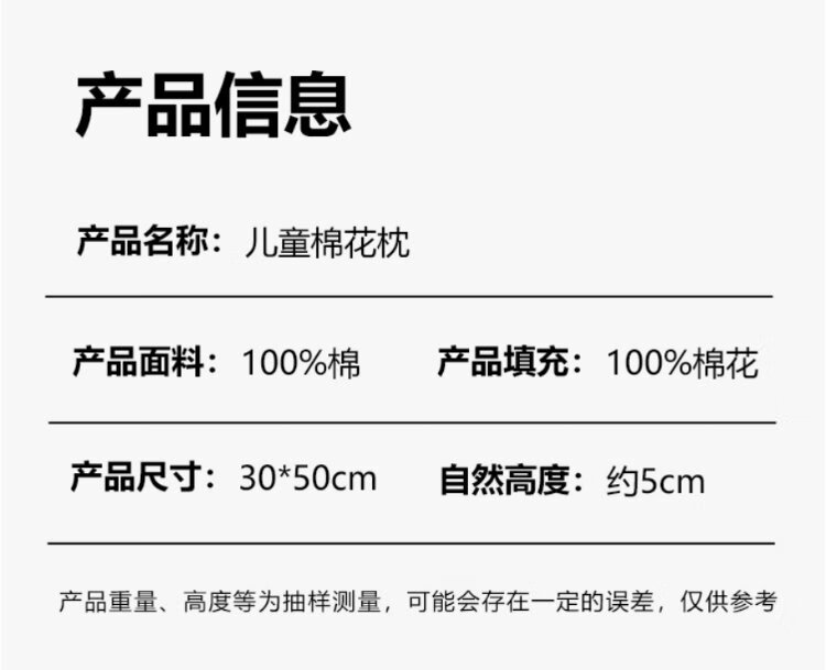 Gasco Kindergarten Pillow 3-6 Years Old Class A Cotton Children's Pillow Cotton Pillow Washable 30*50cm Single Pack