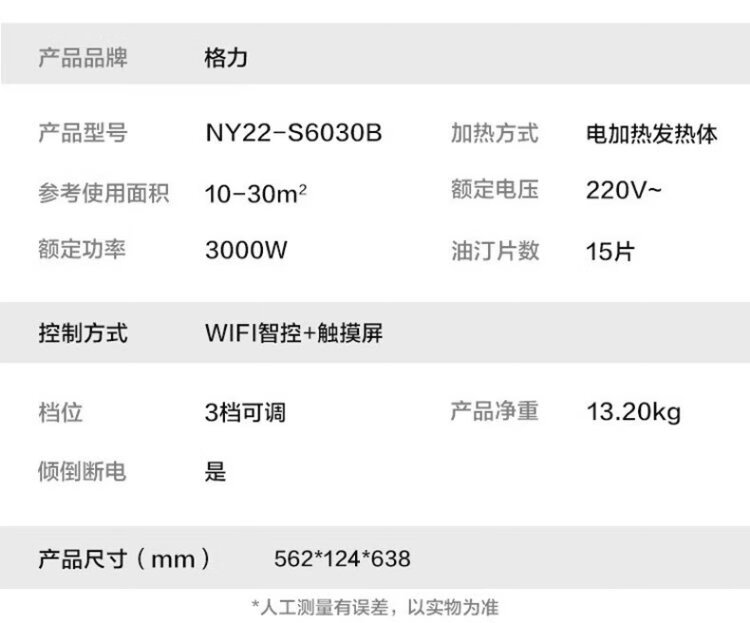 Gree (GREE) 3000W whole house instant heating heater electric oil heater electric heater vertical electric heater / home WIFI smart remote control anti-scalding and humidification NY22-S6030B